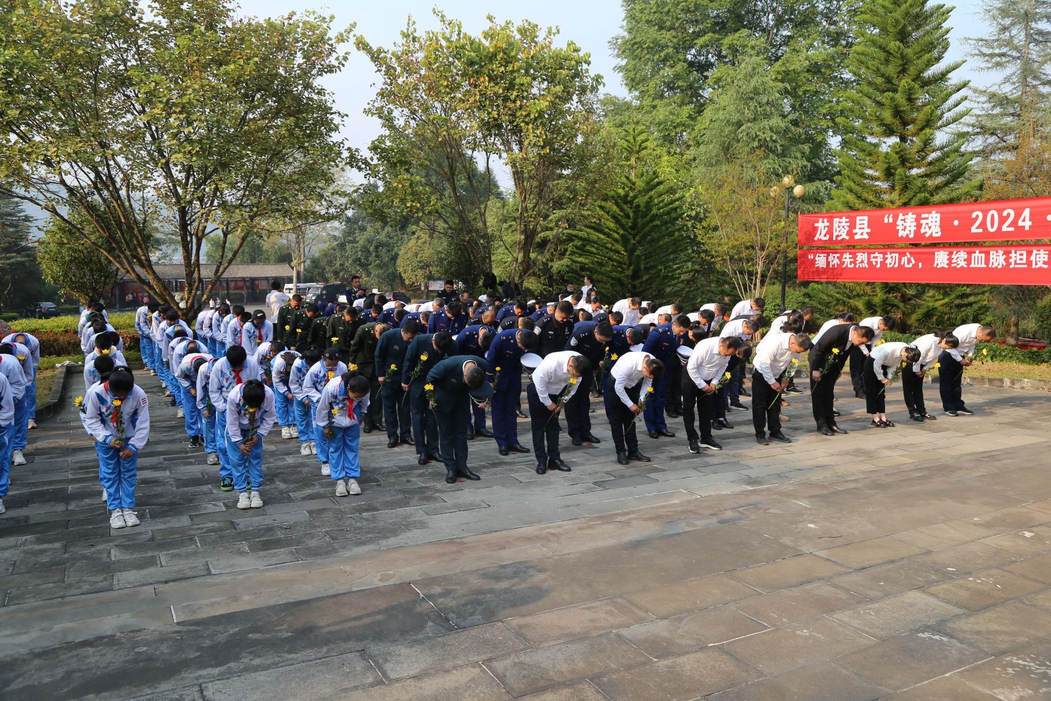缅怀先烈守初心,赓续血脉担使命。4月3日,龙陵县开展“铸魂·2024·清明祭英烈”主题宣传教育活动,深切缅怀革命英烈的丰功伟绩,传承弘扬革命精神,汲取奋进力量。龙陵县党政军民及少先队员代表共计1200多人参加祭扫活动。