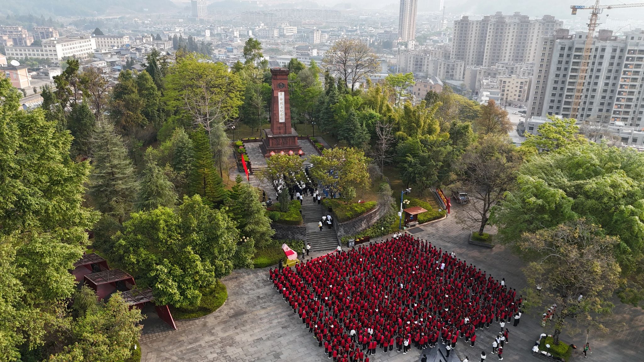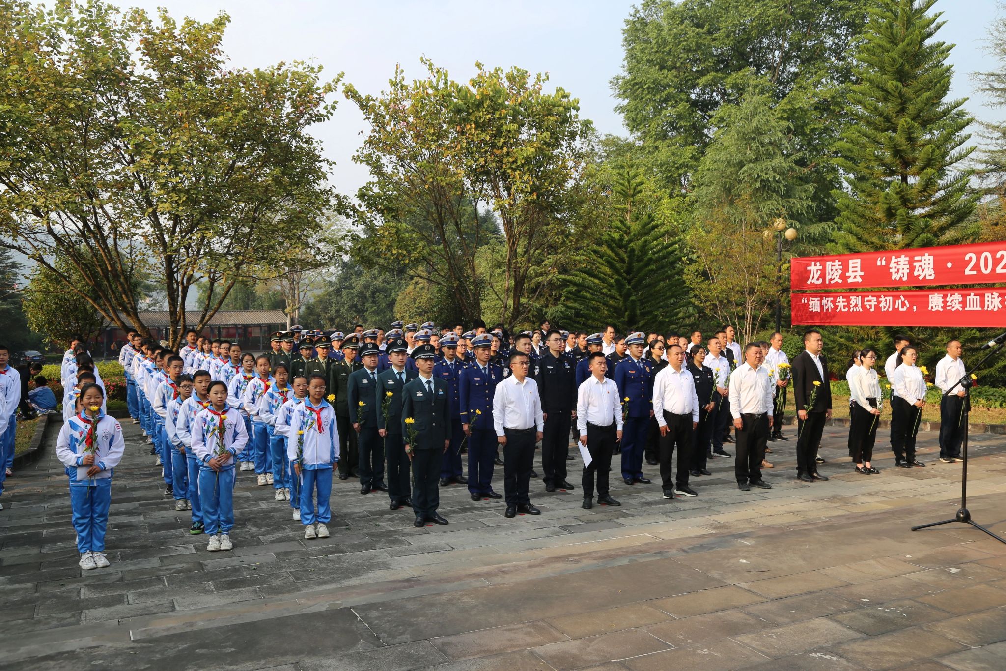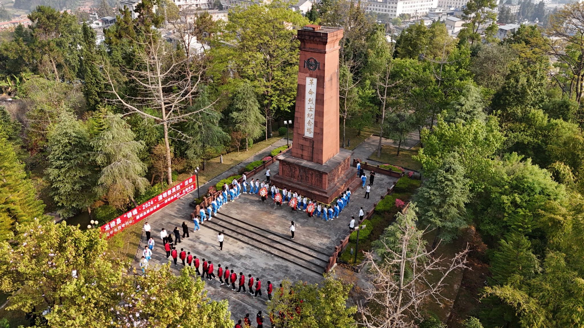 少先队员高声献唱《中国少年先锋队队歌》,缅怀革命先烈不朽功勋,表达当好接班人的远大志向。哀乐声中,参加活动的县级领导缓步上前整理挽联缎带。全场人员共同向革命烈士纪念塔三鞠躬,并有序向革命先烈敬献鲜花,瞻仰革命烈士纪念塔。