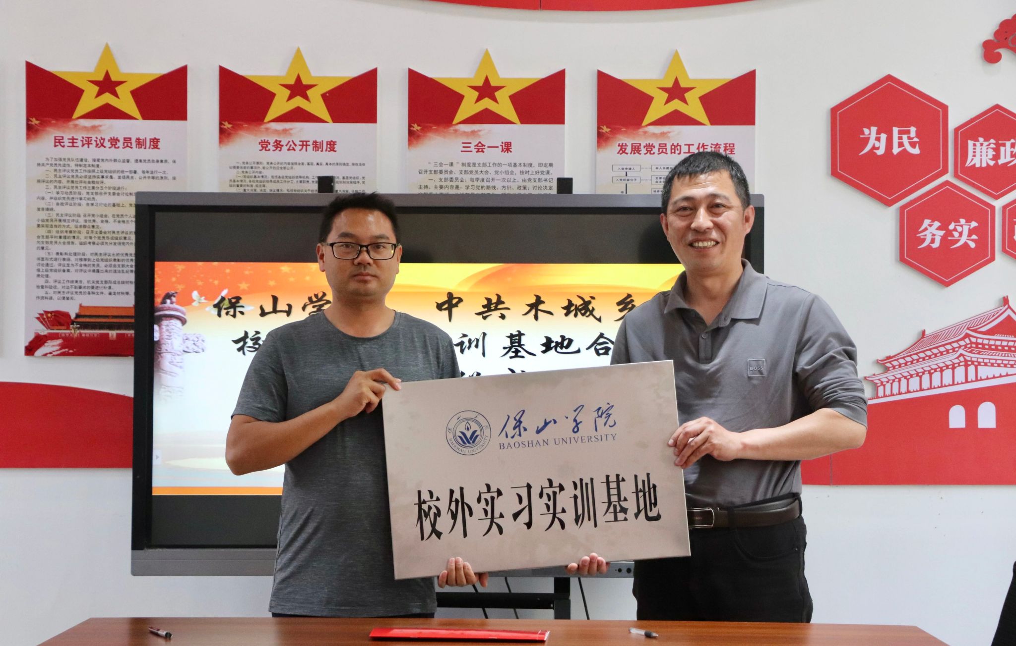 双方本着“优势互补、资源共享、互惠双赢、共同发展”的原则签订协议,并举行了保山学院校外实习实训基地授牌仪式。仪式结束后,乡党政领导与院校代表进行了座谈交流,并就进一步合作展开细节洽谈。