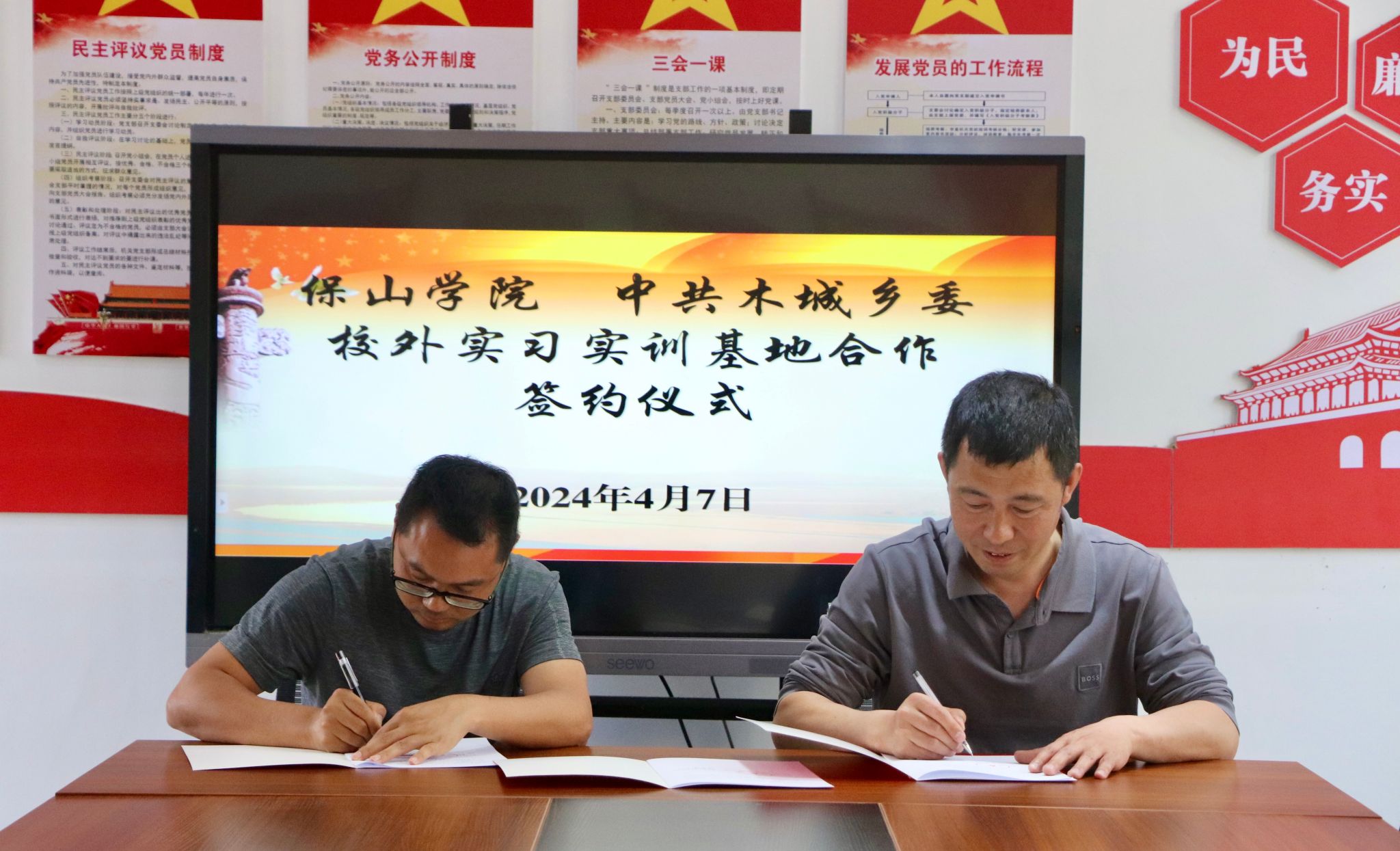 4月7日,保山学院、木城乡校外实习实训基地合作签约仪式在木城乡举行,为进一步合作交流打下坚实基础。