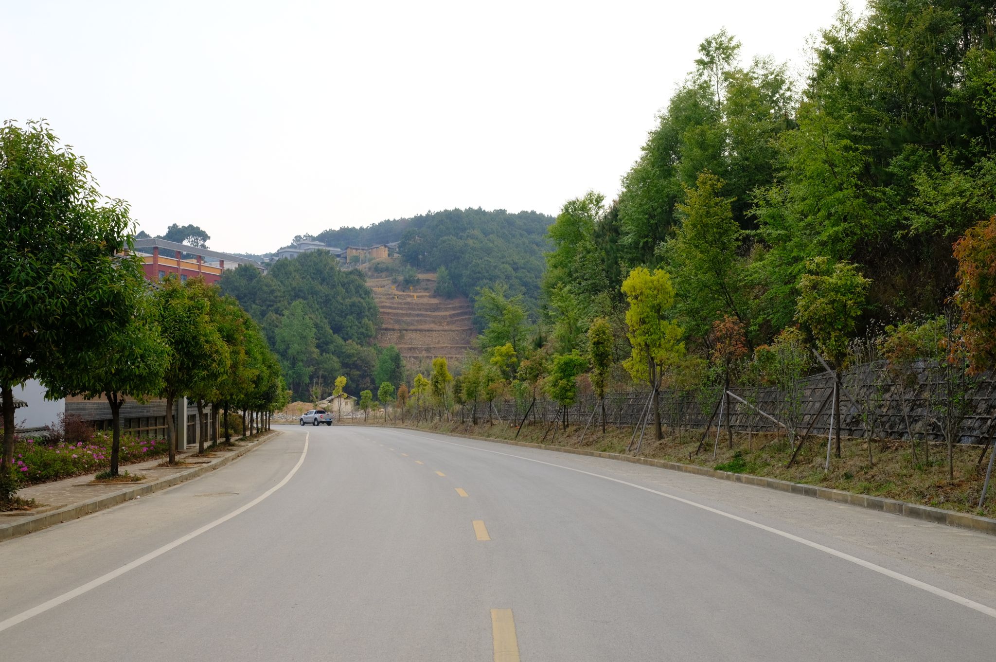 腊勐镇大垭口社区新村坐落在龙陵松山大战遗址公园景区旁边,每年9月份抗日战争胜利纪念日、清明节等节假日,大量游客和本地老百姓都会到松山举行爱国主义教育,祭奠英灵。龙陵县结合景区建设和民俗村落打造,建设七〇七至龙山卡红色旅游公路,在整条公路沿线和村子旁边种植清香木、马蹄荷树、三角梅、桂花树、芒果树等,加入抗战元素,结合怒江地热河谷地域风情,整条路建设根据功能前段沿袭了弹石路风格,让游客切身体会老滇缅公路的雄姿,后段用沥青路面,让游客更好感受交通发展带来的实惠。游客赵文杰说:“从龙陵到松山,一路过来这边的路非常好走,家里人也没有晕车,虽然只有20多公里,但是我们这边已经停了三四次了,欣赏一下沿途的风景,我们的下午饭就定在下面的农家乐,总体感觉还是非常地方便。”