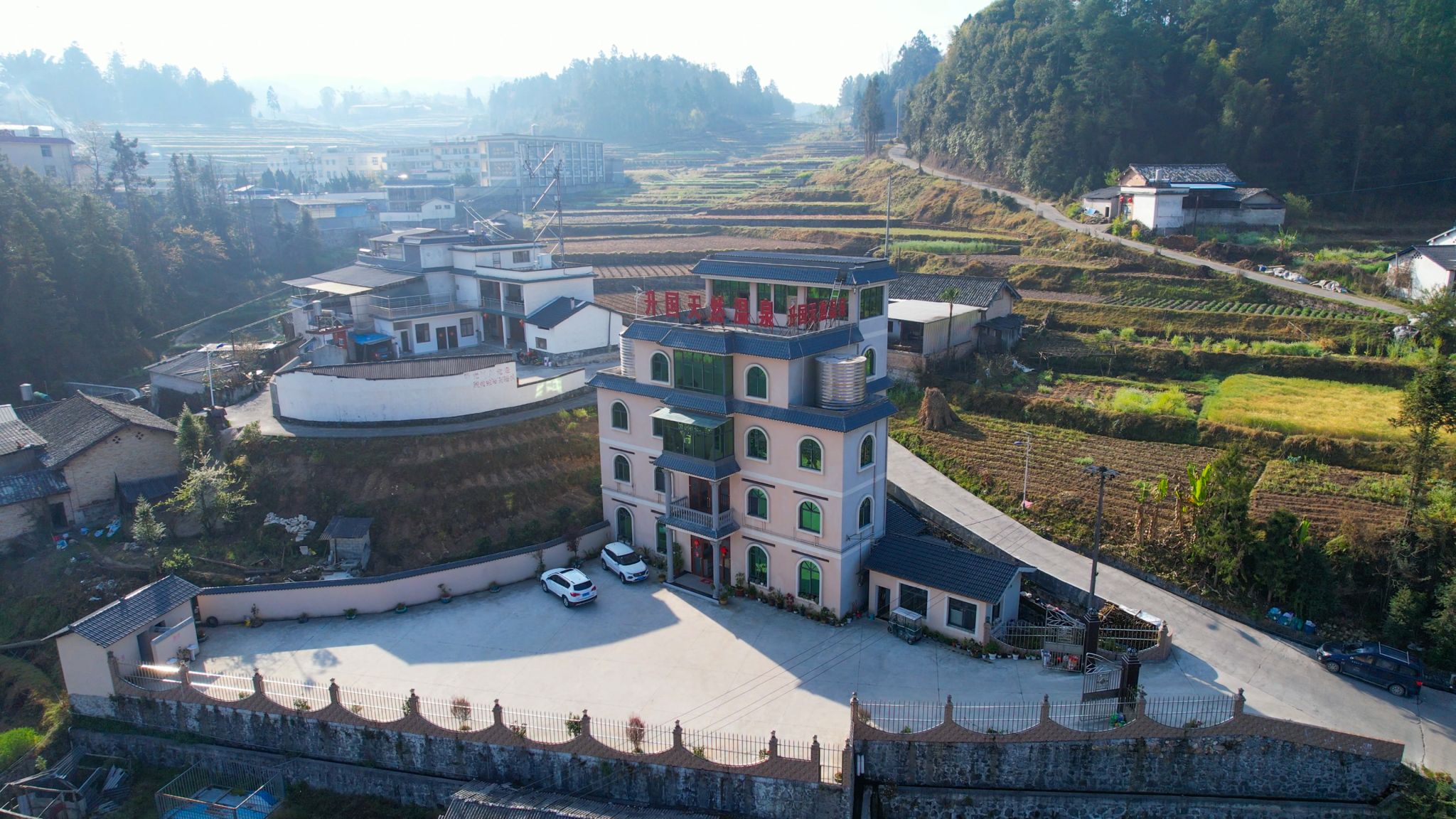 黄草坝社区还抓住紧邻县城、320国道穿境而过的地理区位优势,把闲置土地资源与地热温泉资源同项目建设相结合,积极申报实施边疆党建长廊“四位一体”建设项目。如今,建成1300平方米温泉综合服务中心1个,通过采用公开竞价将温泉综合服务综合中心招租运营,每年为村集体经济增收51万元。