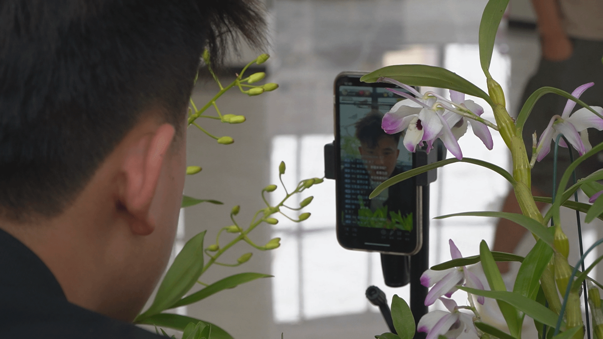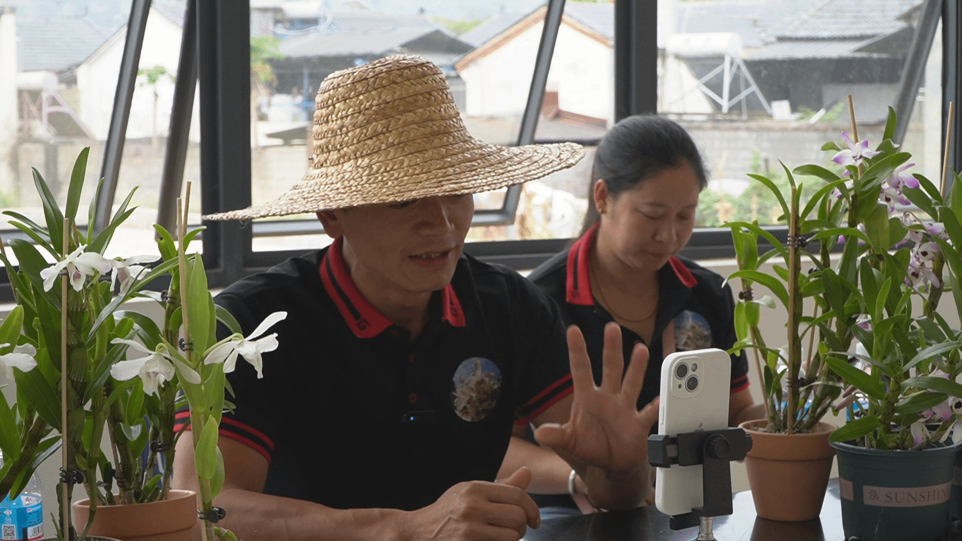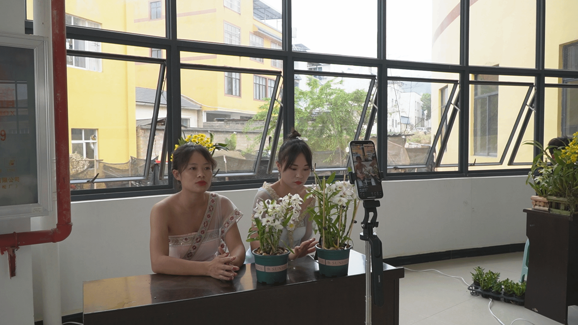 “直播间的家人们,我这里是中国紫皮石斛之乡云南省保山市龙陵县,今天我给你们介绍一款我们可以赏也可以吃的石斛花…”在直播大赛决赛现场,比赛选手正面对镜头滔滔不绝地介绍石斛花卉。现场除了销售石斛花卉和旅游产品外,甜脆豌豆、核桃油、米酒等特色农产品摆进了直播间,各主播准备充分,在会场秀出了风采。