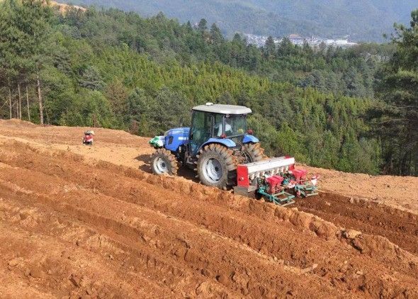 眼下,正值春播玉米的关键期。走进龙陵县龙新乡绕廊等3个村土地整治(补充耕地)项目区,只见4台点播机正在新整治出来的1000多亩山地上忙碌着,每台点播机每天以30亩的播种进度正在点播玉米。