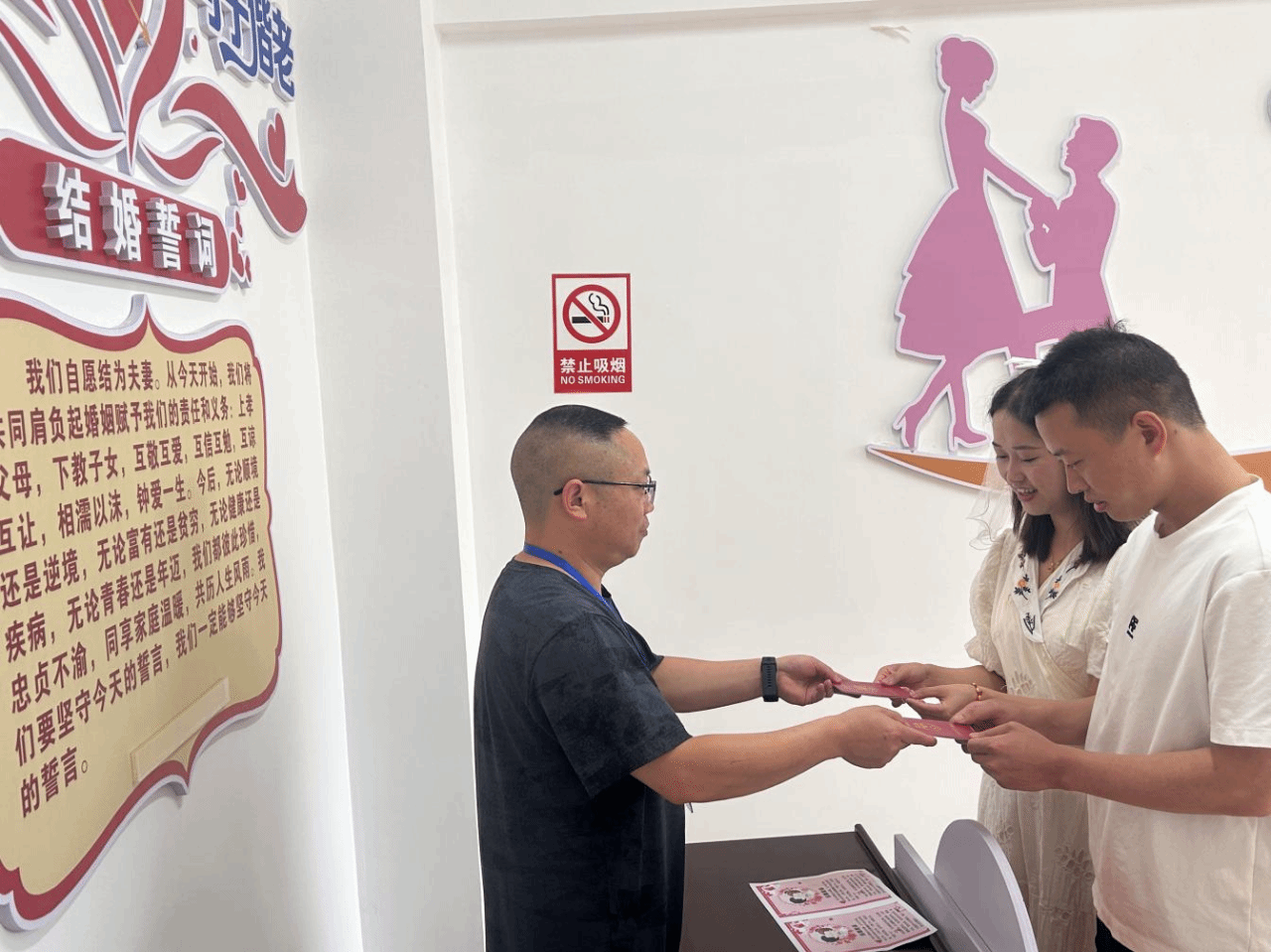 每年的5月20日,因谐音“我爱你”而被人热捧,不少新人选择在这一天共赴约定,立下“爱”的誓言。为满足新人们办理婚姻登记的需求,做好高峰日集中登记工作,龙陵县民政局深入推进作风革命效能革命,统筹安排、提前谋划,全力为爱护航。