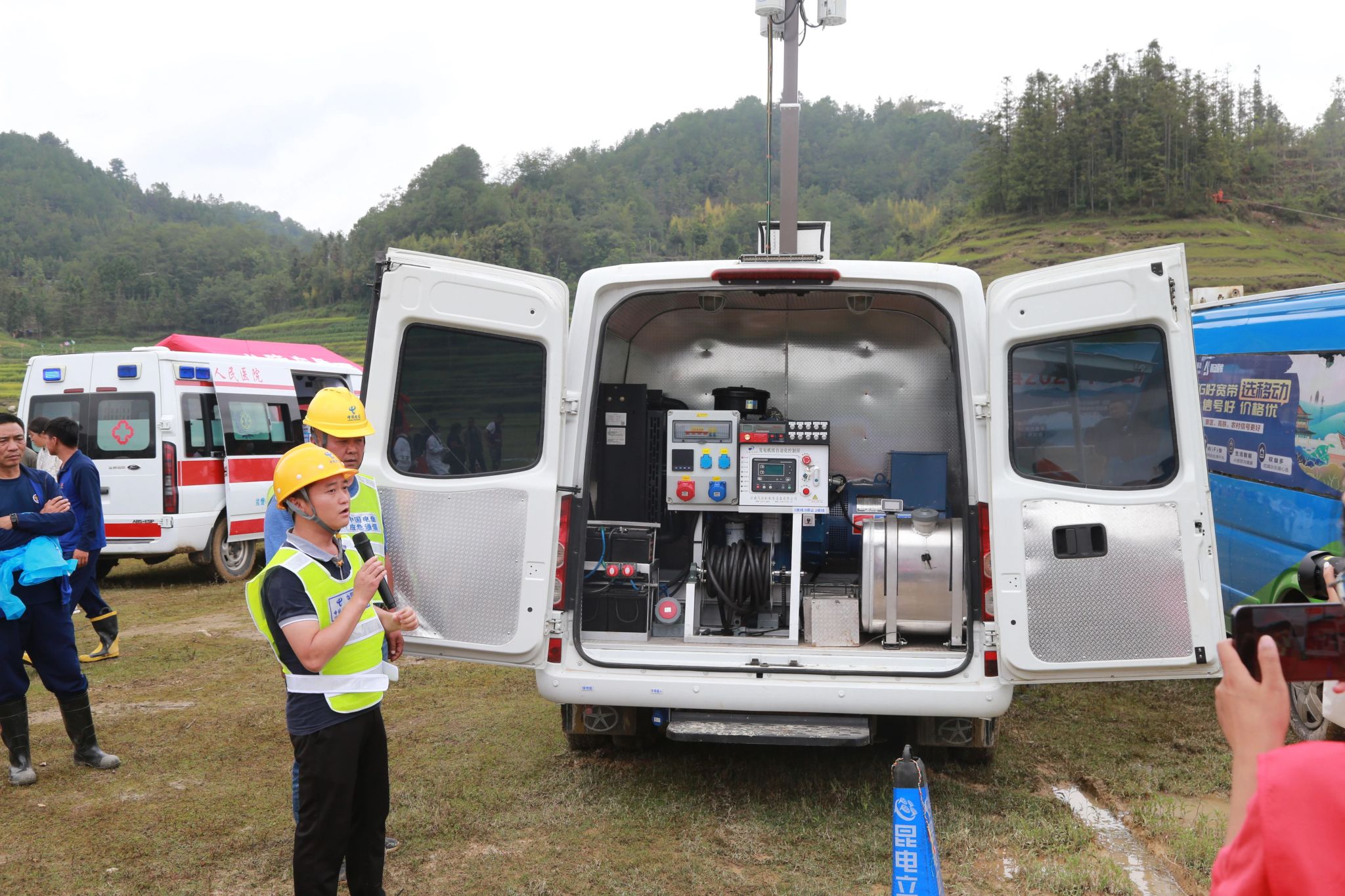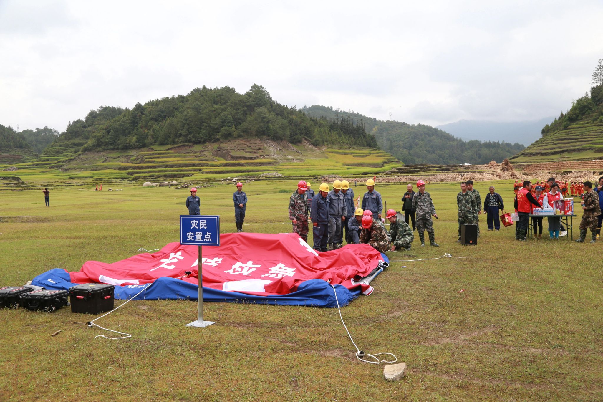 随着指挥长一声令下,演练活动正式开始。演练模拟龙陵县龙新乡蚌缈村一带发生里氏5.8级地震,地震造成震中地区1人被困,1人受伤,交通、电力、通信中断,部分河堤受损,田地被淹,部分村组发生地质灾害,急需人员转移安置,电线短路引发森林火灾等情况。