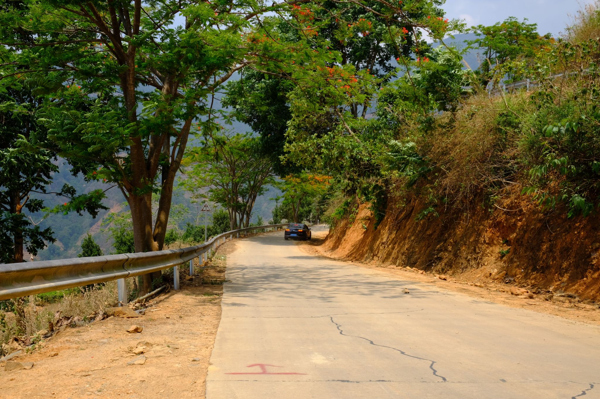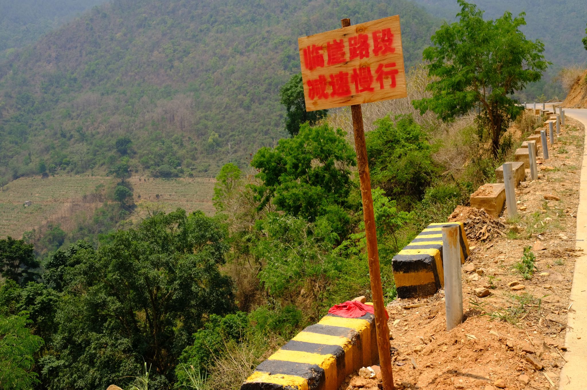 由于目前县内三茄公路(三江口至茄子山)、红勐公路(红旗桥至勐糯)以及国道219龙陵段三条道路都在施工,原来作为辅线的龙天公路车流量急剧加大,道路承载能力和安全隐患随之成倍数增长。该条路线虽然是县道,但路线比较狭窄,弯道多,坡度大,临水临崖路面和高边坡情况复杂,驾驶员对路面情况不熟悉,很容易发生道路交通事故。经过现场排查和研判,须要对该路段实施安全生命防护工程,安装防护栏,消除安全隐患。