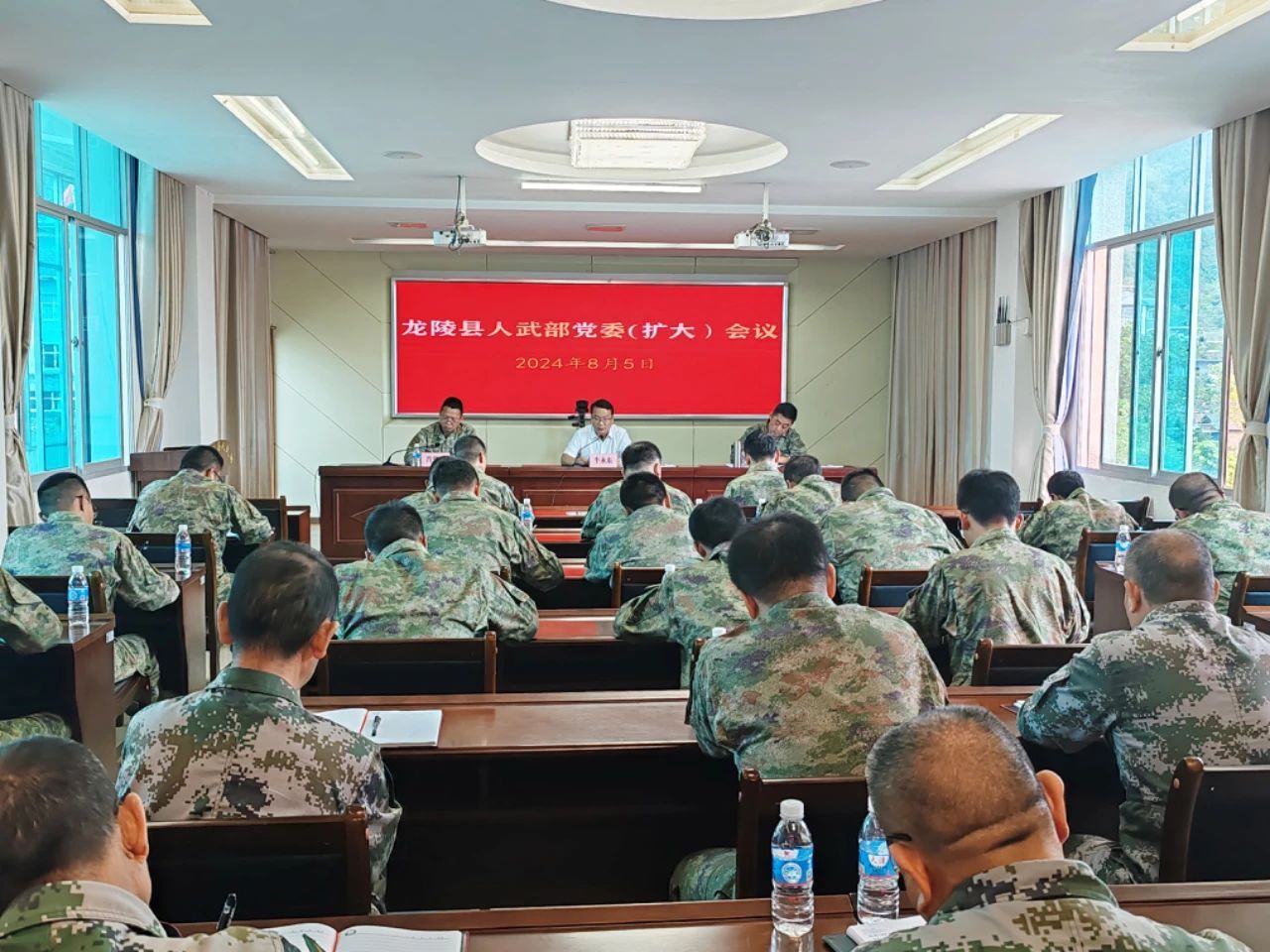 8月5日,龙陵县人武部召开党委(扩大)会议,深入学习贯彻党的二十届三中全会精神和中央军委政治工作会议精神,认真落实省军区、军分区部署要求,总结上半年工作,安排部署下一步任务。县委书记、县人武部党委第一书记牛永东出席会议并作要求。县人武部党委书记、政委毕戬旭代表部党委作工作报告,县人武部党委副书记、部长肖华辉对基层武装工作集训成果转化进行安排部署。