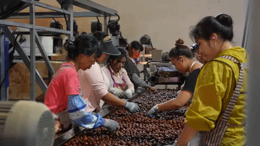 勐糯镇发展坚果产业已有30多年,有1497户果农种植坚果,2024年种植面积达14500余亩。在前几年的收购时节每年都有1千多吨的青皮果等着收购商上门收购,但由于交通不便、运输成本高收购商不愿上门,价格上不去,群众种植的积极性也在慢慢跌落。2023年杨荣富投资450万元在当地建起了坚果初加工厂。现在加工厂每天都挤满了交售坚果的农户。果农杨建芬高兴地说:“今天卖了317公斤,卖得2730元,坚果厂就建在家门口很方便,价格也好。”农户在现场就能领取到现金。后期价格好的情况下,会突破10元每公斤,今年预计收购1500吨,将支付给老百姓1500万元的果子钱。