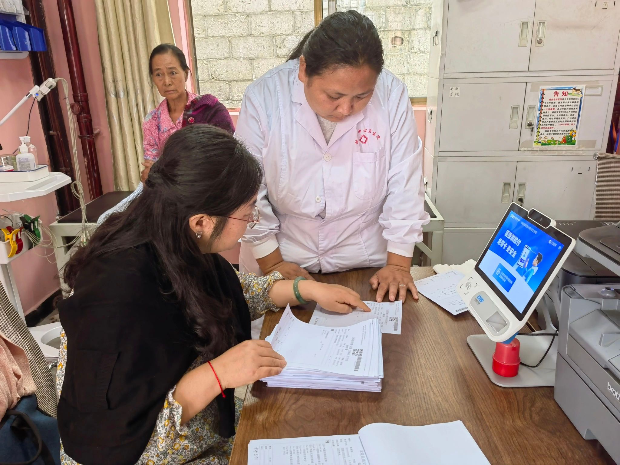医共体医保管理中心工作人员核对“刷脸”报销情况