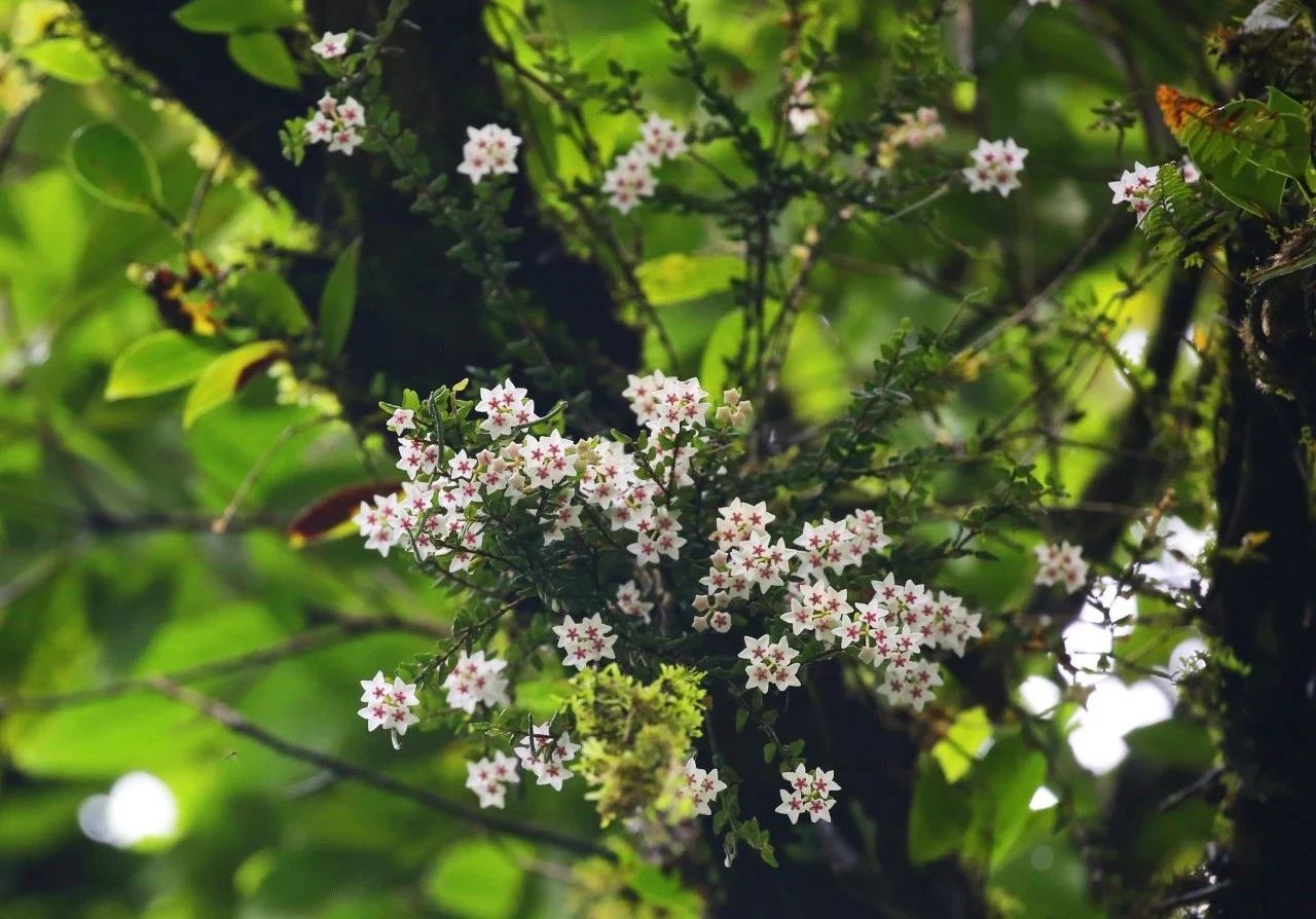 眼下正值初秋时节,龙陵县的山水间,大部分“山花”的花期已接近尾声。而生长在龙陵小黑山省级自然保护区原始密林中的球兰属植物才陆续开花,仍是一派秋影如诗、景色如画的勃勃生机景象。