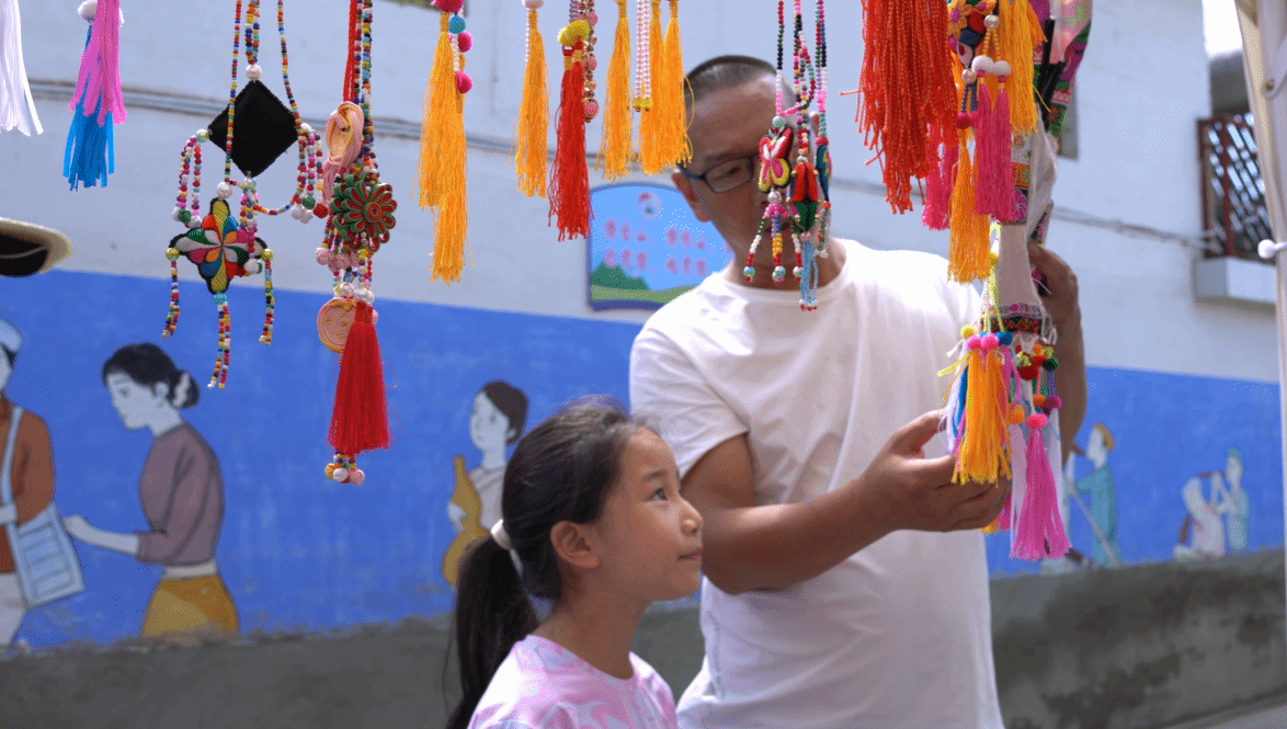 “我们现在看到的这位传承人,她正在做的是我们国家第五批非物质文化遗产佤族织锦技艺的展示,用的是踞织机,它是人类历史上构造最简单,历史最久远的织技之一,佤族织锦的特点就是用最丰富的颜色,织出了丰富的图案。”西盟县孟梭镇班母村驻村第一书记陈涛介绍道。