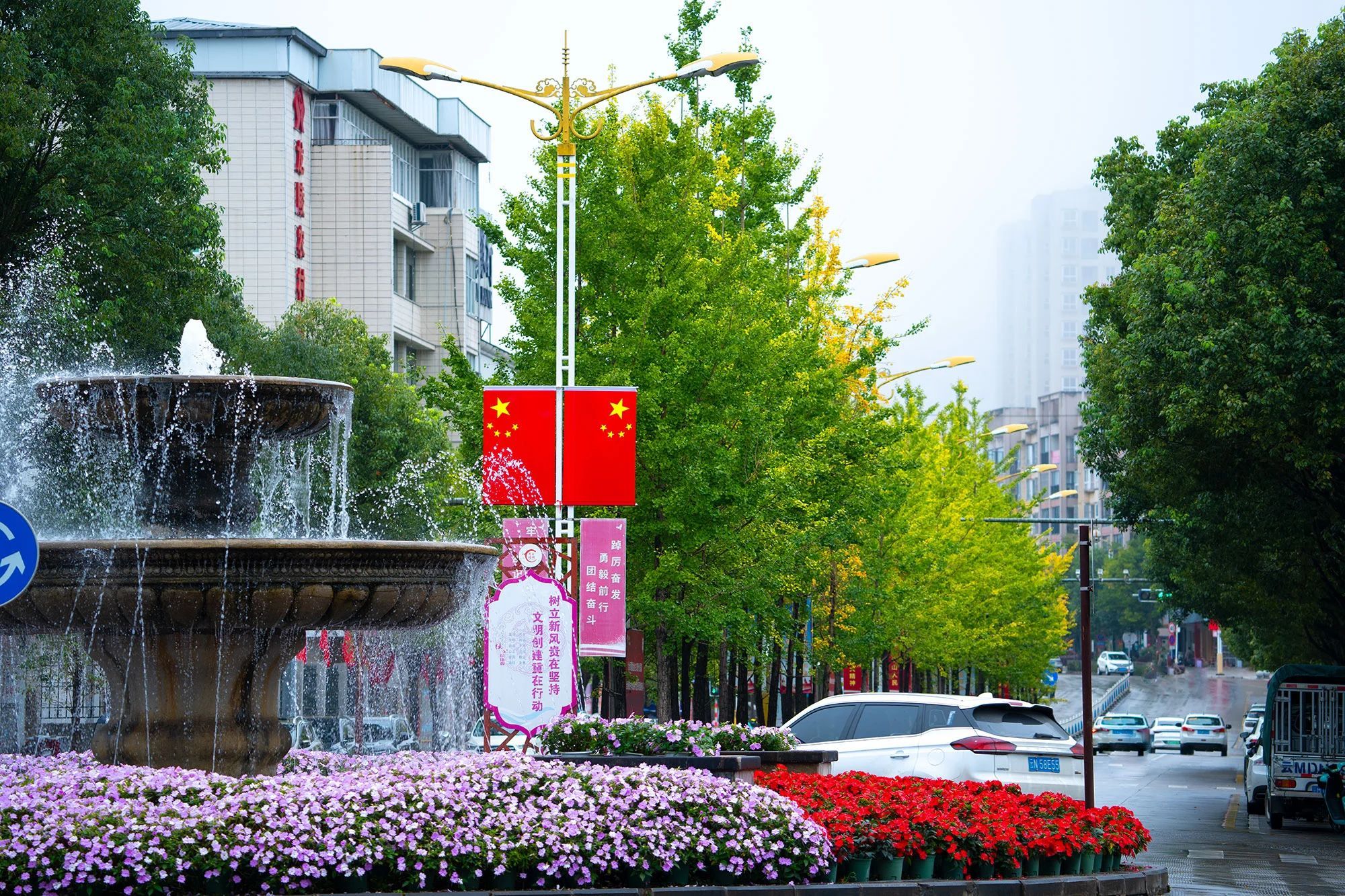 国庆节将至,走进龙陵县,只见城乡大街小巷、村寨小组上悬挂起了鲜艳的国旗,用最美“中国红”庆祝中华人民共和国成立75周年,喜庆祥和、欣欣向荣的氛围感已经扑面而来。