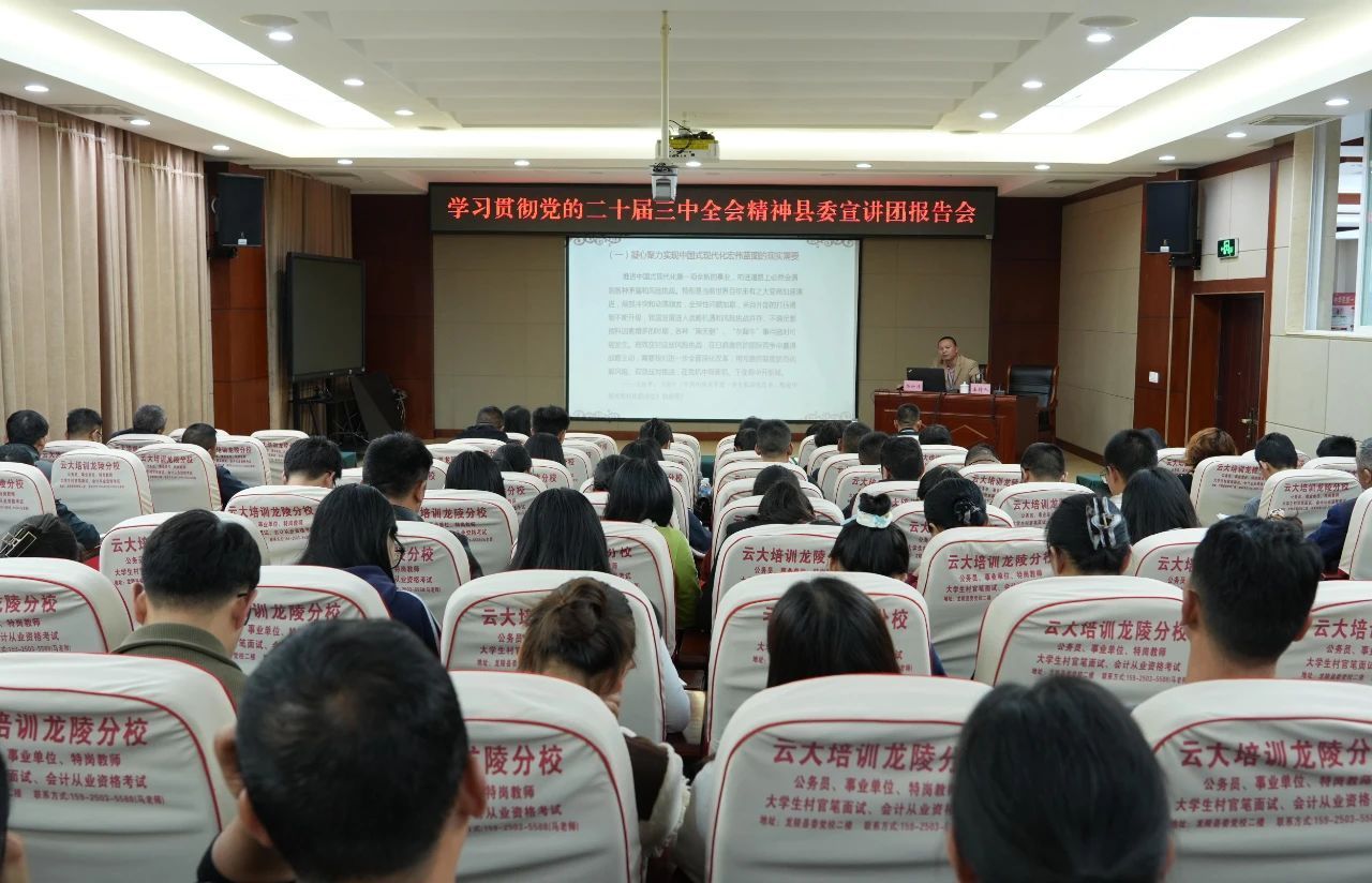 10月21日,学习贯彻党的二十届三中全会精神县委宣讲团报告会在县委党校举行。县委办、县纪委监委、县委组织部、县委宣传部、县委统战部、县委社会工作部、县委党史研究室、县委党校、县融媒体中心共计120余名党员干部参加。