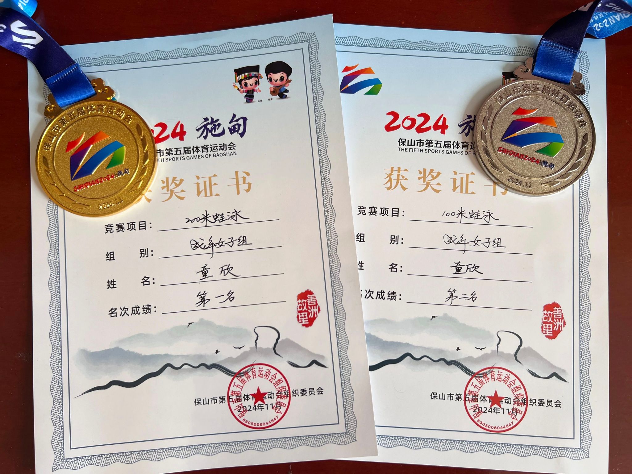 时间一晃八年,亭亭玉立的姑娘变成了一名“宝妈”。酷爱游泳的童欣第四次代表龙陵队出征市运会。在选为市运会参赛运动员后,童欣全心投入、刻苦训练。“天道酬勤。”在本次市运会200米蛙泳比赛中,童欣沉着冷静、全力以赴,以3分51秒41的成绩获得了第一,超出第二名3秒21。这一刻,她终于在市运会的赛场上,用金牌为自己的付出画上圆满的一笔。