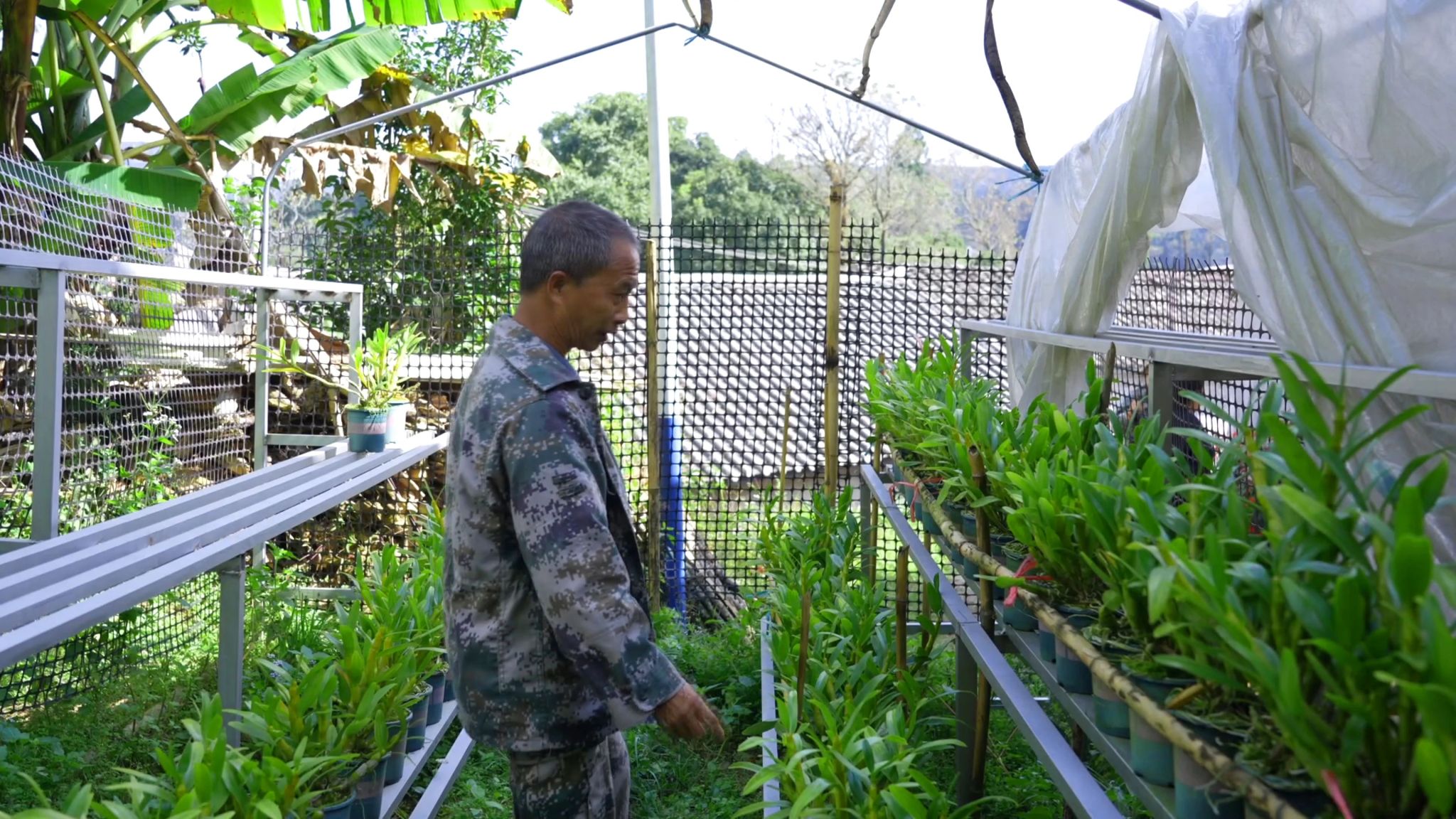 象达镇象达村营盘小组村民黄留德在自家大门口的空地里种上了60盆石斛花卉,他说:“石斛花管理方式特别简单,平时我只要早晚浇浇水、进来看看有没有虫类危害,3-4月开花后,就有人来回收,每一盆花给我们15块的管护费。”