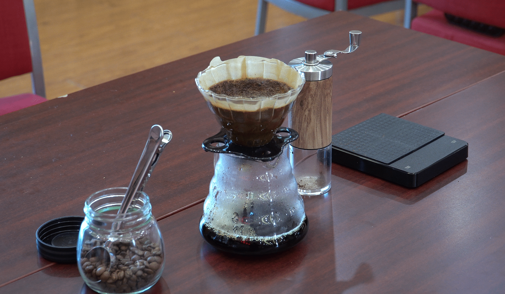 讲座邀请了云南省农业科学院热带亚热带经济作物研究所助理研究员张晓芳授课。张晓芳为学员讲述了咖啡的起源及发展,咖啡豆的产地、品种类别、烘焙方式与独特风味等内容,并演示了咖啡的研磨、萃取、滤纸折叠、水壶使用、冲泡全过程,让全体学员近距离感受咖啡冲煮的技巧。