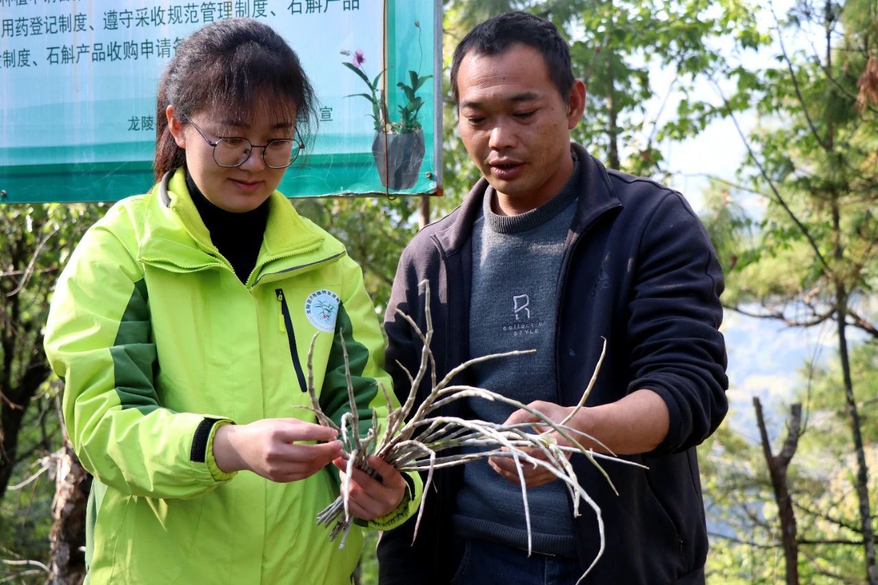 眼下正是石斛采收季,龙陵县石斛产业发展中心的工作人员又来到镇安镇邦迈村紫皮石斛林下近野生栽培技术示范与推广基地,从科学采收等方面对斛农进行指导。