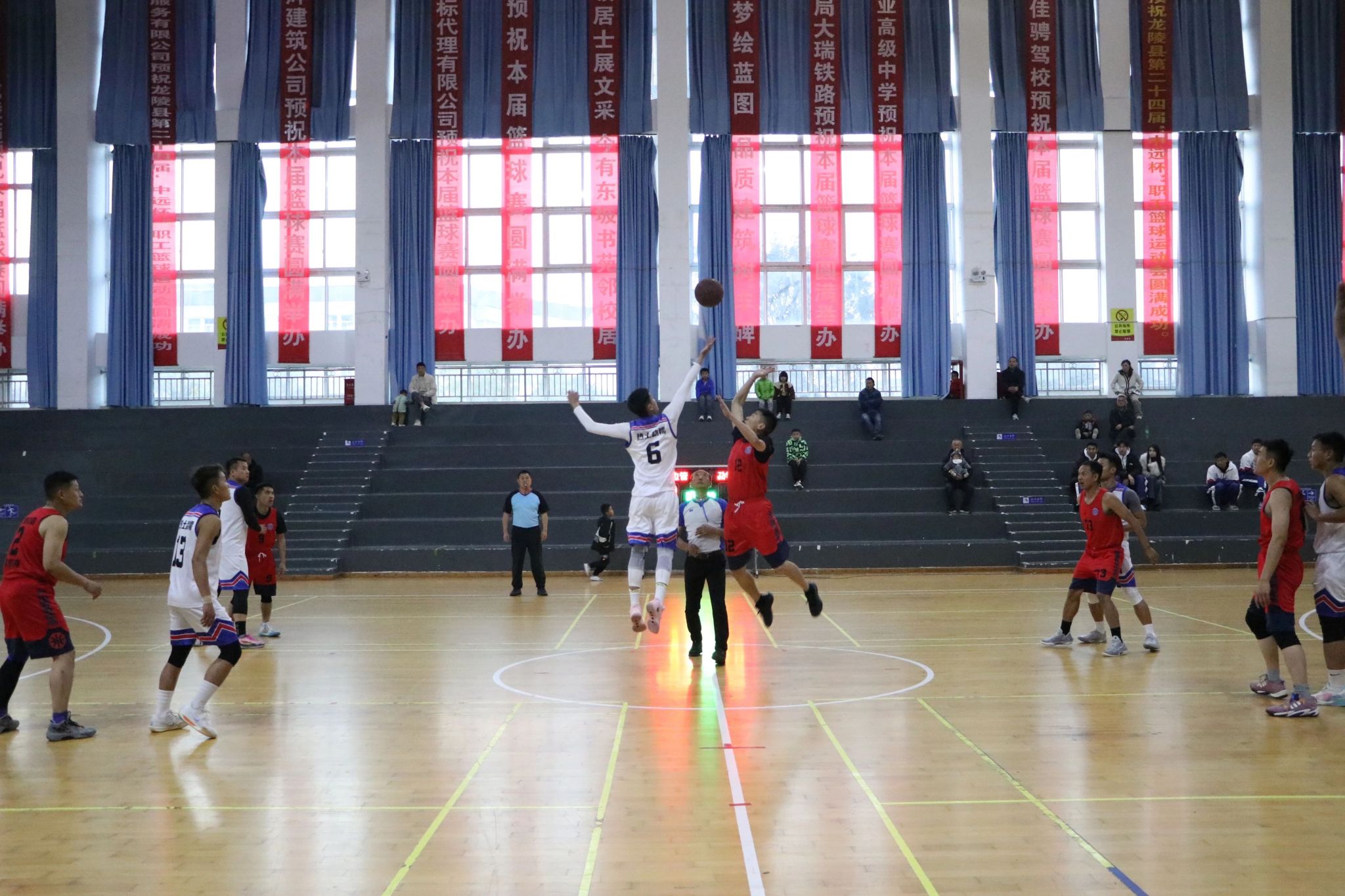 为了一睹两队精彩对决,观众早已将看台四周围得水泄不通。随着主裁一声清脆哨声,比赛正式开始。勐糯镇早早进入比赛状态,一波8:0,打停对手。暂停回来,勐糯镇再得3分后,龙陵边管终于连得4分。密不透风的防守,让龙陵边管失误频频。龙陵边管无奈再次请求技术暂停,暂停回来,龙陵边管进攻状态稍有好转。第一节结束,14:29,勐糯镇领先。