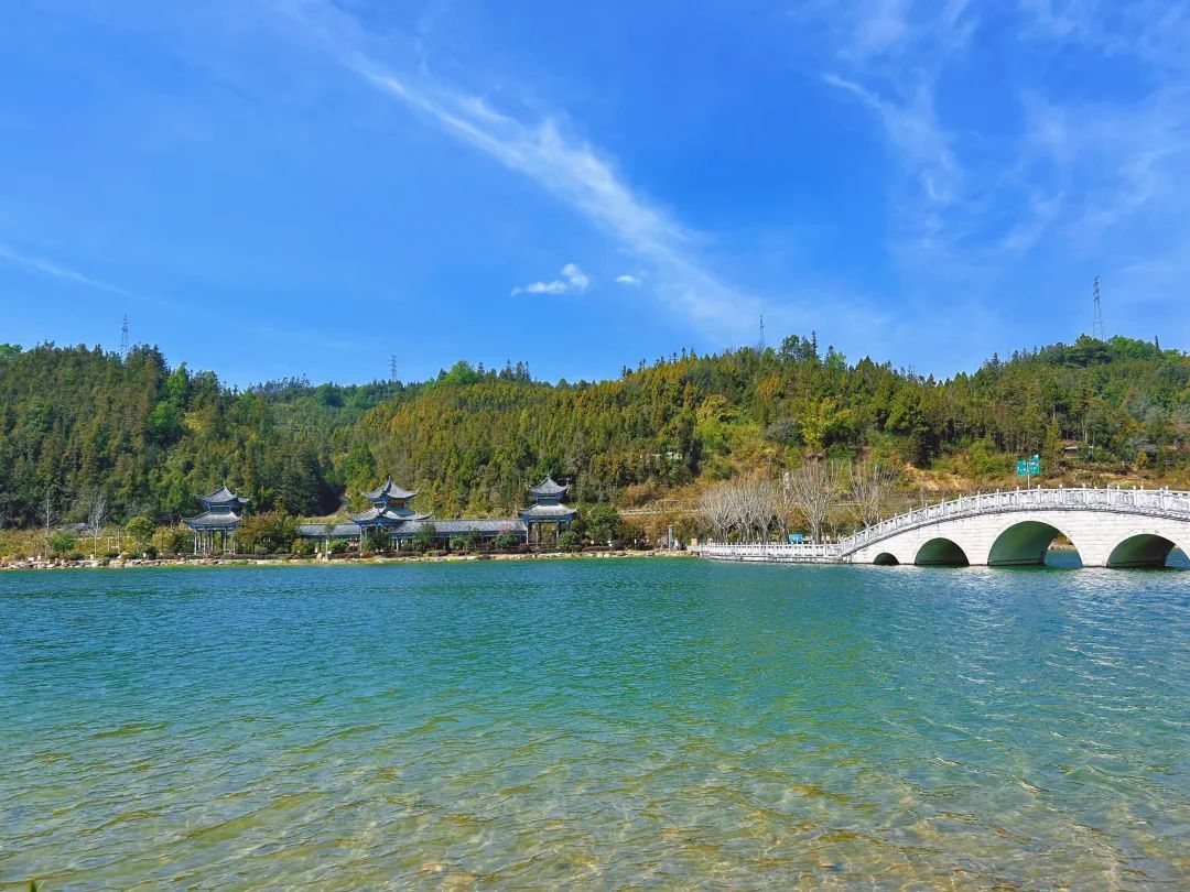 龙陵县城区域的常住人口不过几万,加上城区小,彼此都是街坊邻居、亲戚朋友。在街上散步,总会碰到熟人,彼此拉拉家常、寒暄问候都是常事。走到龙山湖,歇歇脚,望望风景,也不失为一大乐趣。龙山湖是人工打造的独属于龙陵的亮丽名片,来龙陵,总是要到这里逛一逛的。湖水清澈得发蓝,与天上的蓝天相映成趣。而附近的楼宇亭阁,则是供人们休息的好去处。