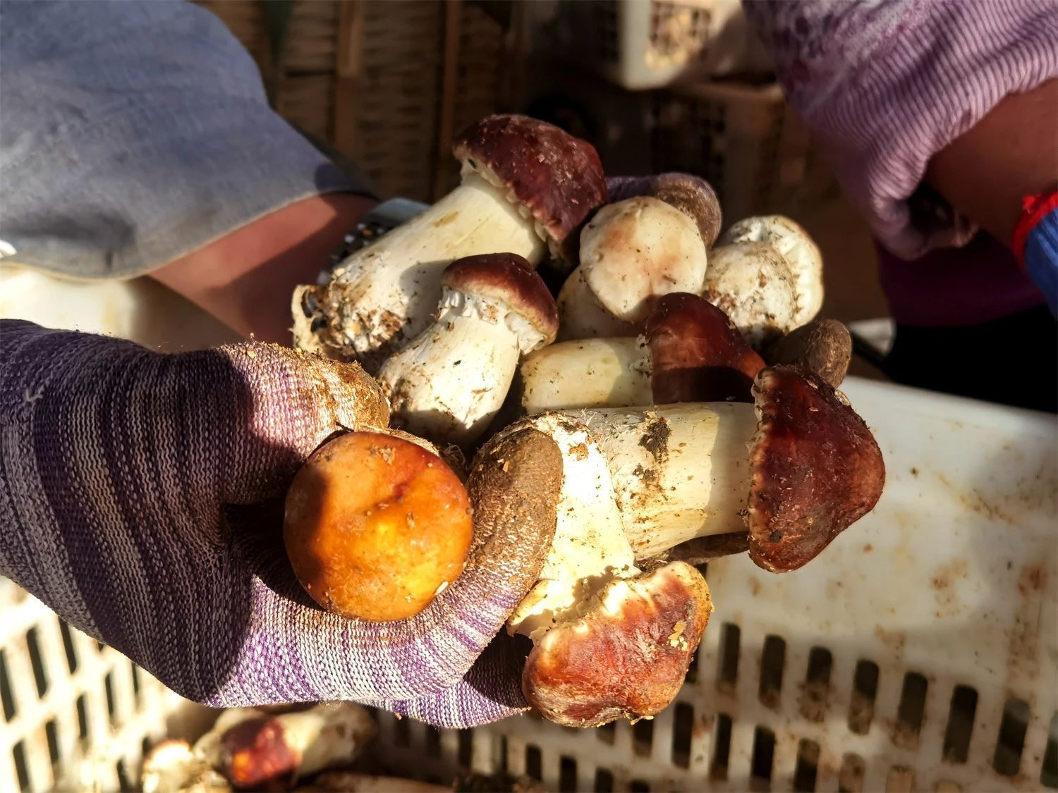 说到市场供应,来自福建的吴高丽介绍:“赤松茸作为一种食用菌,具有丰富的营养价值和一定的食疗功效。它的功效主要包括增强免疫力、促进消化以及提供微量元素等。口感也非常好,脆生生的,不管是炖排骨、煲菌汤、炖鸡,还是炒着吃、蒸着吃,味道都鲜得不得了。当地的菌子品质高、品相好,菌子快要上市的时候我就来守着。如今,上市半个月来,我往外销售了5吨,主要销售在云南省内。等大量上市后,我将采用冷链物流车运输发往深圳、上海、杭州等地。”