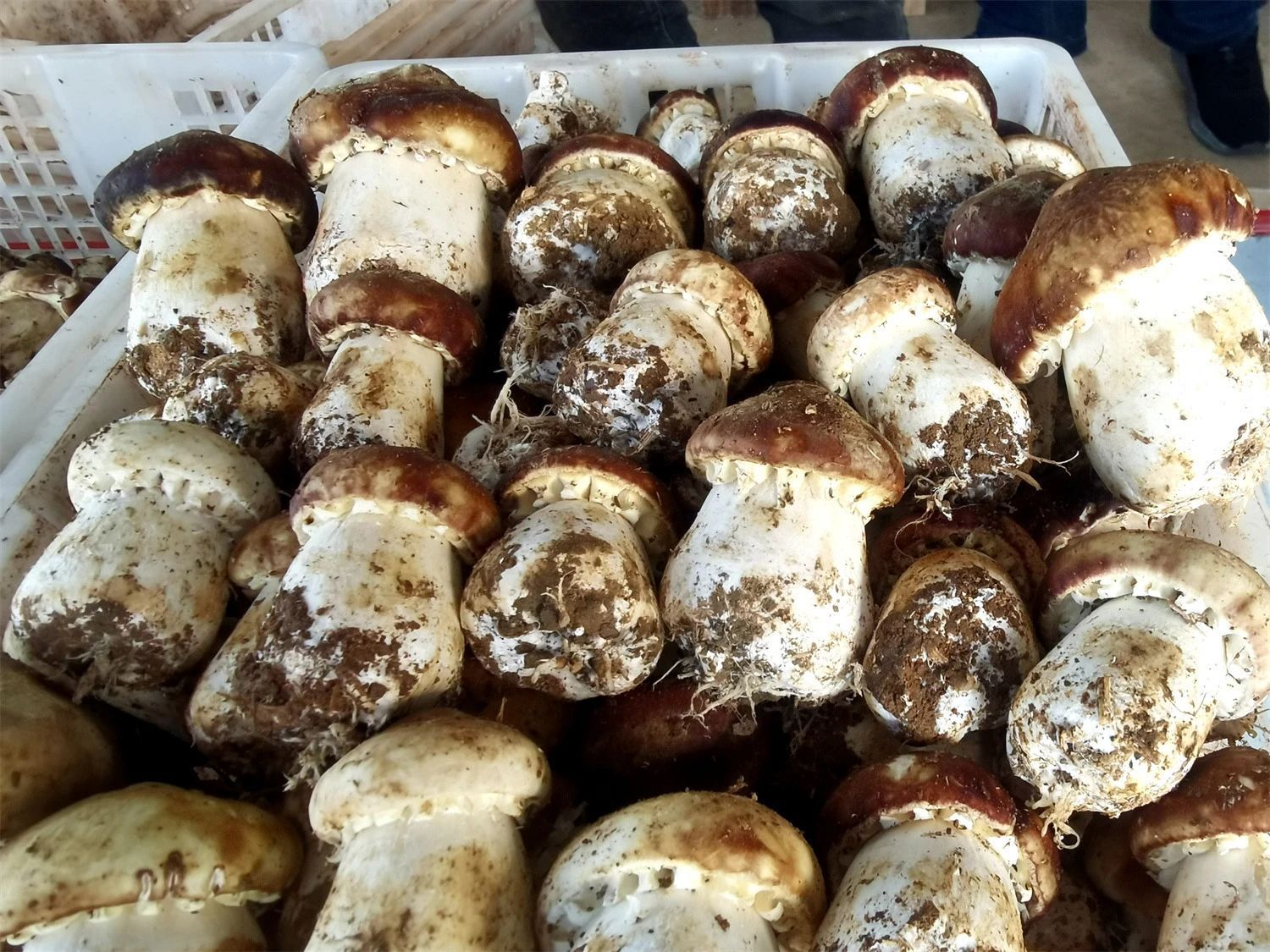 新鲜的赤松茸,其他人员忙着分拣、称重、打包、发货,在第一时间将新鲜的赤松茸送到消费者手中。