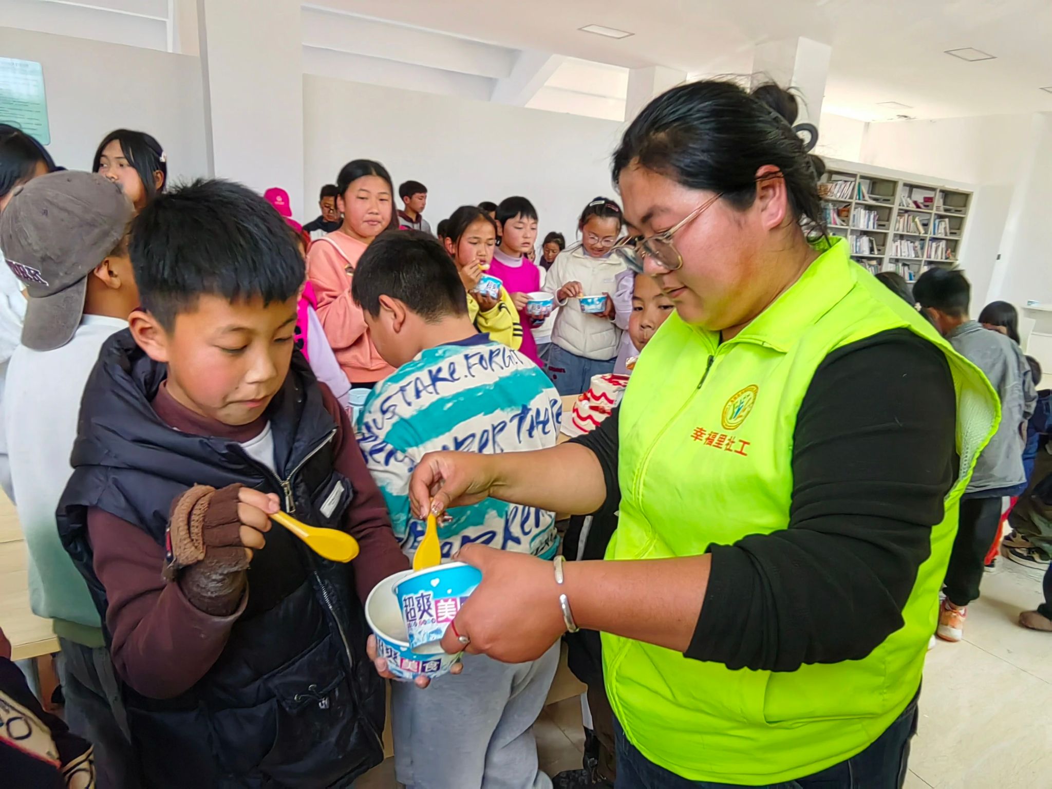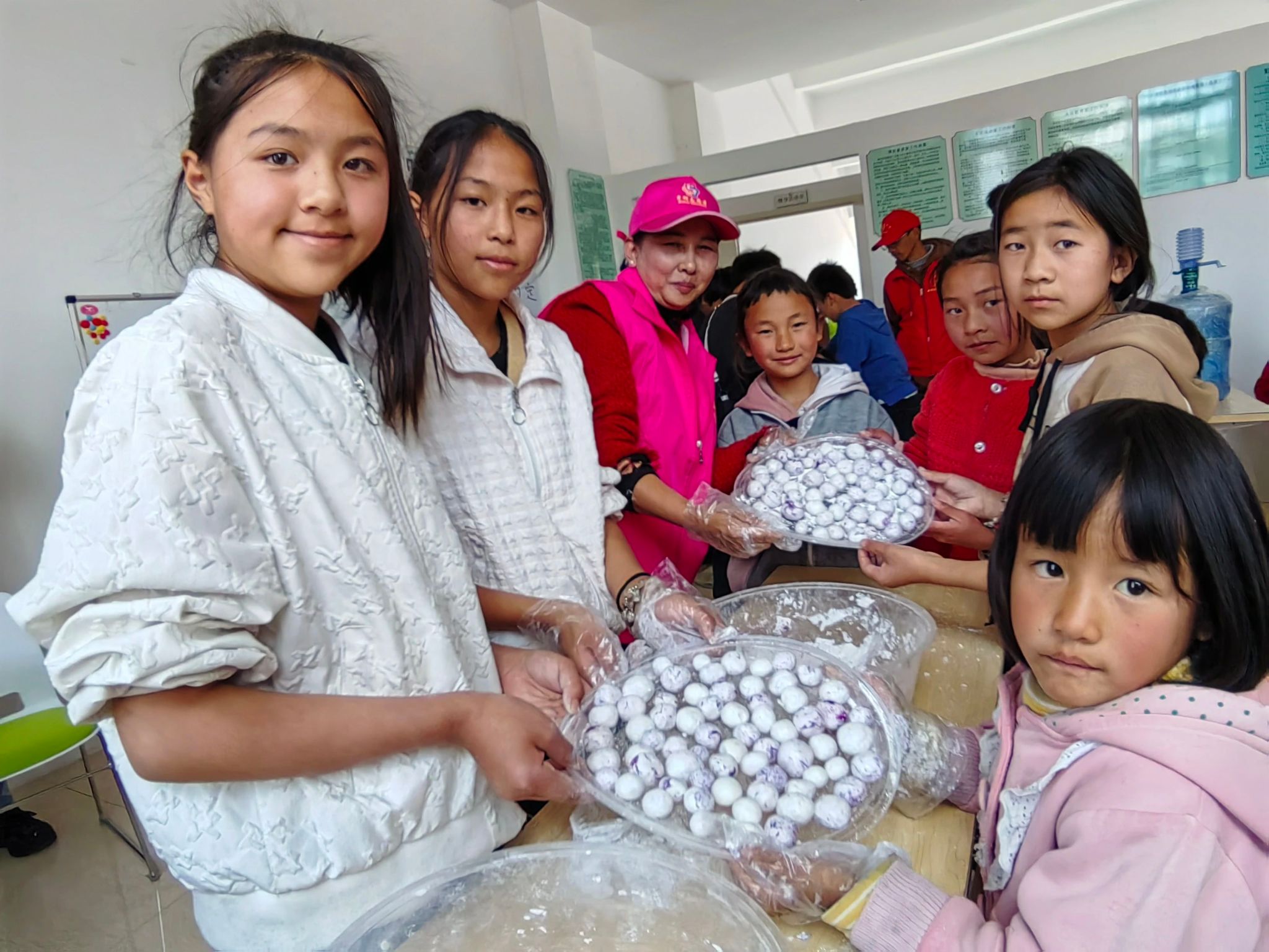 游戏结束后,志愿者们将准备好的糯米面及制作汤圆所需材料按组分发给孩子们,大家撸起袖子齐上阵,和面、捏团......大大小小的汤圆下入锅中,孩子们端起一碗碗汤圆,不仅感受到甜蜜蜜的味道,还体验到了元宵佳节传统文化的魅力。集体生日会上,大家齐唱生日快乐歌,一起共度幸福快乐的一天。