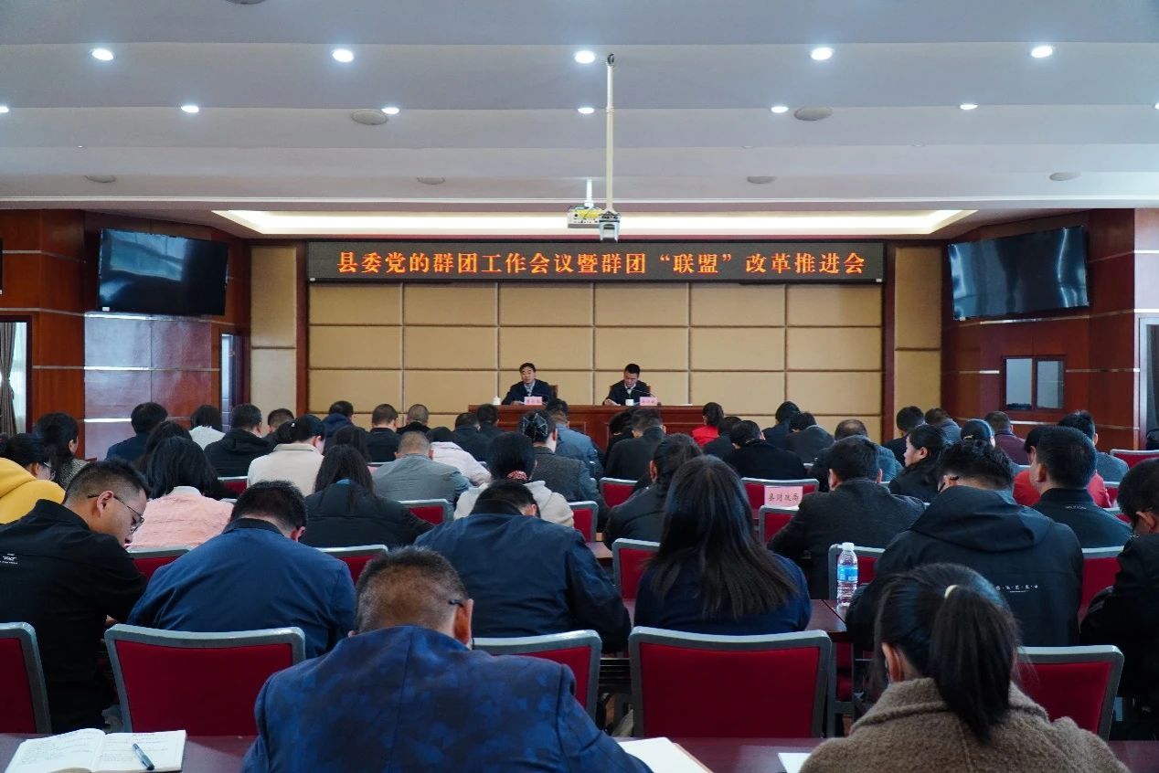 会议强调,做好新形势下群团工作,使命光荣、责任重大。全县各级群团组织要坚持把政治建设放在首位,加强思想政治引领,团结引导广大群众坚定不移听党话、跟党走,与党同心、跟党奋进。要紧紧围绕县委确定的“八大攻坚行动”工作部署和全年的目标任务,充分发挥群团组织人才荟萃、智力密集的优势,积极主动作为,推动群团工作不断创新、创效、创优。要坚持以党建带群建、以群建促党建,按照建起来、转起来、强起来的目标,着力加强基础、建强基层,把群团组织建设得更加坚强有力、充满活力。要持续深化群团“联盟”改革,通过改革更好的集中阵地、整合资源、统筹项目、凝聚力量,努力打造群团“联盟”改革亮点品牌,助推群团工作不断迈上新台阶。要以“严”的标准、“实”的举措,把群团工作做扎实、做到位,真正让群团工作活起来、群团干部强起来、群团事业火起来,奋力开创全县群团工作新局面。