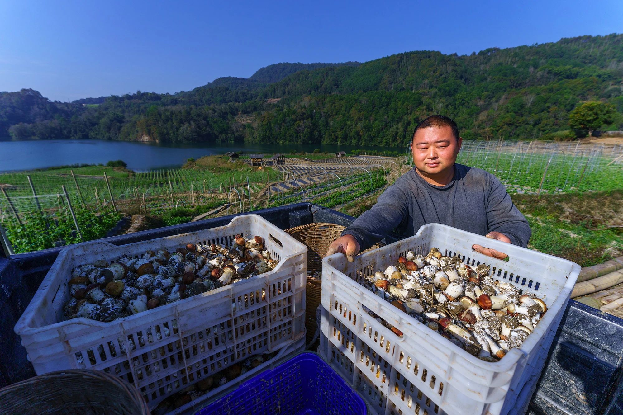说到新鲜,每天一大早,村民们便穿梭在菌垄间,及时采摘长势正好的赤松茸。目前还未迎来出菌高峰期,随着气温回暖,出菌量会日渐增多,采菌周期也可从1月持续到5月份左右。今年,村民李庆芬家也栽种了2亩,她一边摘菌一边高兴地说:“你看,这些赤松茸的品相和品质都太好了,送到收购点或许能评为一级菇。今天大概能采四五十斤,采了后直接送给老板就行了。”
