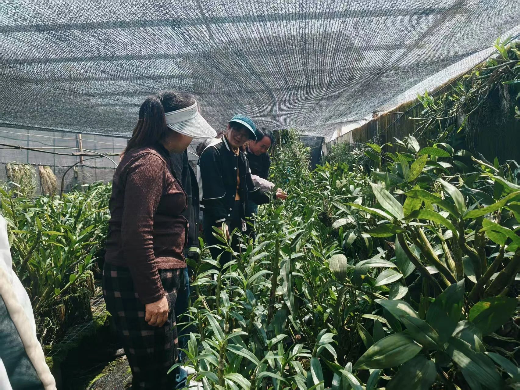 在平安村张家坡石斛花卉“庭院”示范基地,县石斛产业发展中心专家团队,针对当前石斛易发的病虫害防控、水肥管理、花期调控等难点问题,手把手为农户示范操作。通过“理论讲解+现场实操”模式,专家重点传授了石斛花卉种养阶段的温湿度调控、基质更换周期判断、有机肥精准施用、良品繁育等实用技术,并现场解答了农户关于花期延迟、叶片黄化等常见问题的解决方案。“以前凭经验种植,遇到病害只能盲目用药,现在专家教我们如何观察植株状态、科学调配营养液,成本降了,花品相更好了!”种植大户王丽萍在培训后感慨道,通过专家的现场指导,她对石斛花卉的种植管理更加有信心了。