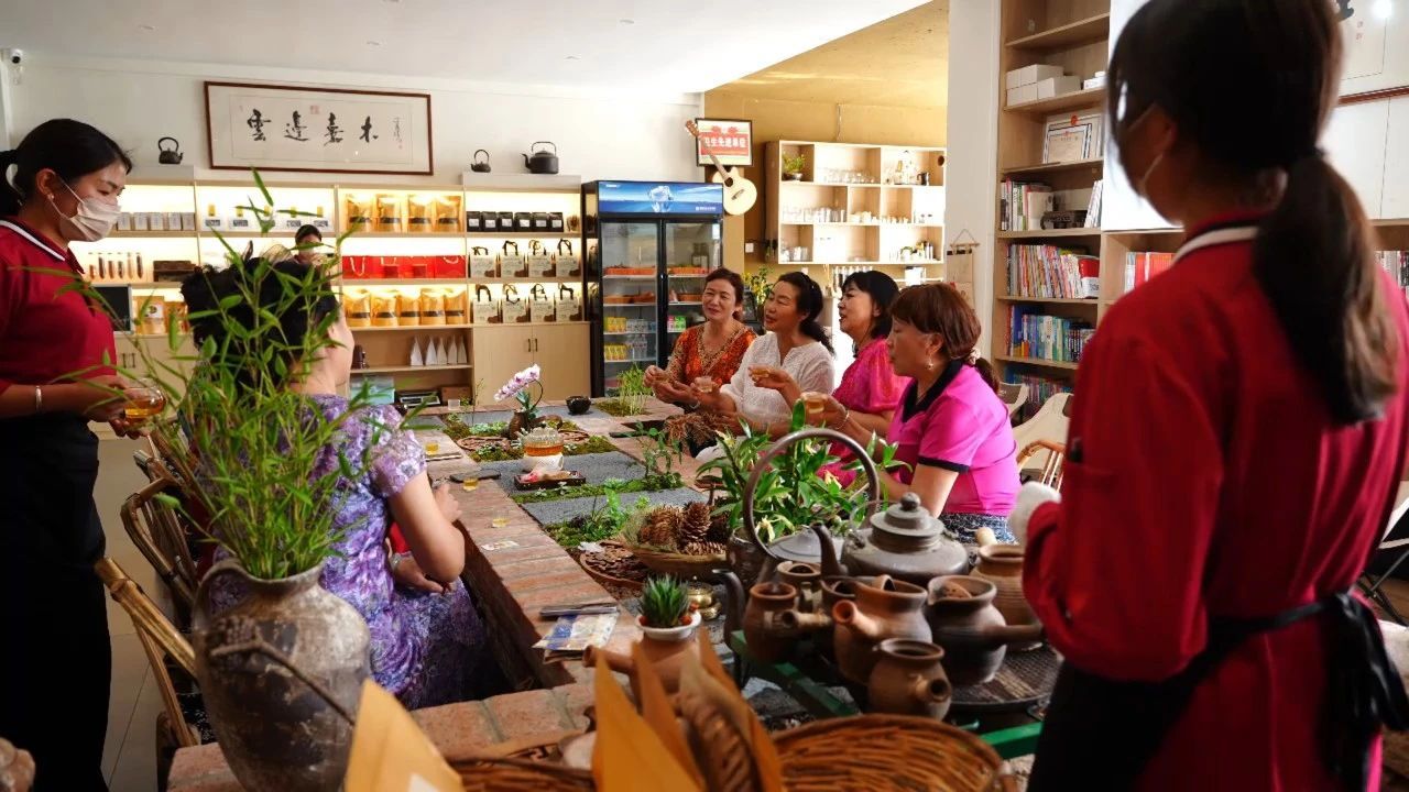 “在这里,我学到了很多东西,见识也广了。公司准时给我们发放工资,还给我们缴纳了社保,五险一金。”从民宿建成就在这里工作的龙江乡弄岗村郭家寨小组的村民濮秀菊,一边烤茶一边说。“我们招进来的每一名员工就像我们的家人一样,他们的工作很认真,也肯学,我也有信心带着他们往前走。”云边嘉木民宿负责人何东慧接着说道。
