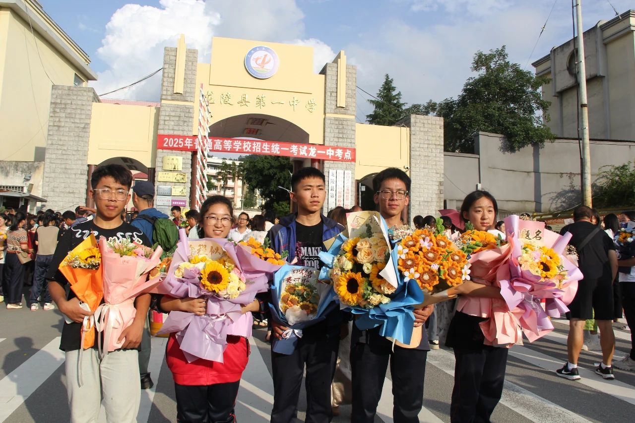 为了表达浓浓爱意,亲友团们身着盛装迎接。“金榜题名”“前程似锦”“一举夺魁”等各式各样精美手捧花,鲜花簇拥下的卡片上,写满了独具匠心的祝福话语。