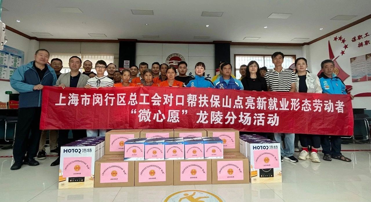 6月23日,上海市闵行区总工会到龙陵县开展对口支援活动,为新就业形态劳动者点亮“微心愿”,把跨越千里的关怀与温暖送到他们身边。