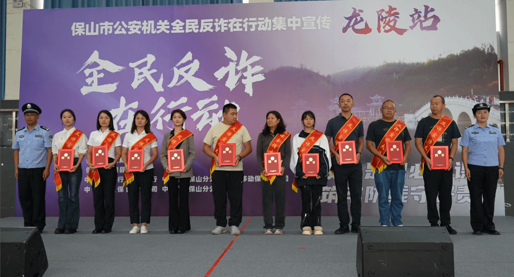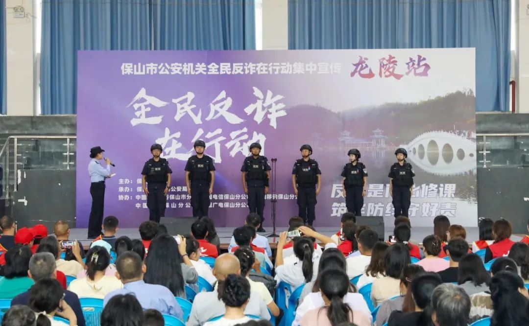 8月2日,由保山市公安局主办、龙陵县公安局承办的“全民反诈在行动”主题宣传活动在龙陵县体育广场室内篮球馆举行。活动以“反诈是门必修课、筑牢防线守好责”为主题,通过文艺表演、有奖问答、聘任反诈宣传大使等形式,向群众普及反诈知识,提升防范意识。