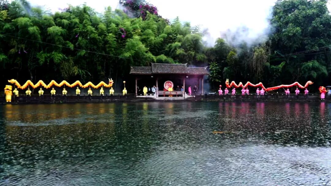 “风调雨顺、五谷丰登、六畜兴旺、国泰民安,开源喽!”上午,开源仪式在清塘广场举行,这场浸着水汽与喜悦的丰收盛会正式拉开帷幕。雨中,一名当地中年男子手握缠着红彩的锄头,在清塘边开挖水口。雨水混着秋收的气息,随着清水顺着沟渠流淌,缓缓流向连片的稻田。“雨天开源更应景!”村民朱朝新说道,“这不仅是给稻田补水,更是给我们心里增添底气。水足了,稻谷才能长得好,稻花鱼才能养得肥,庄稼才有好收成。”