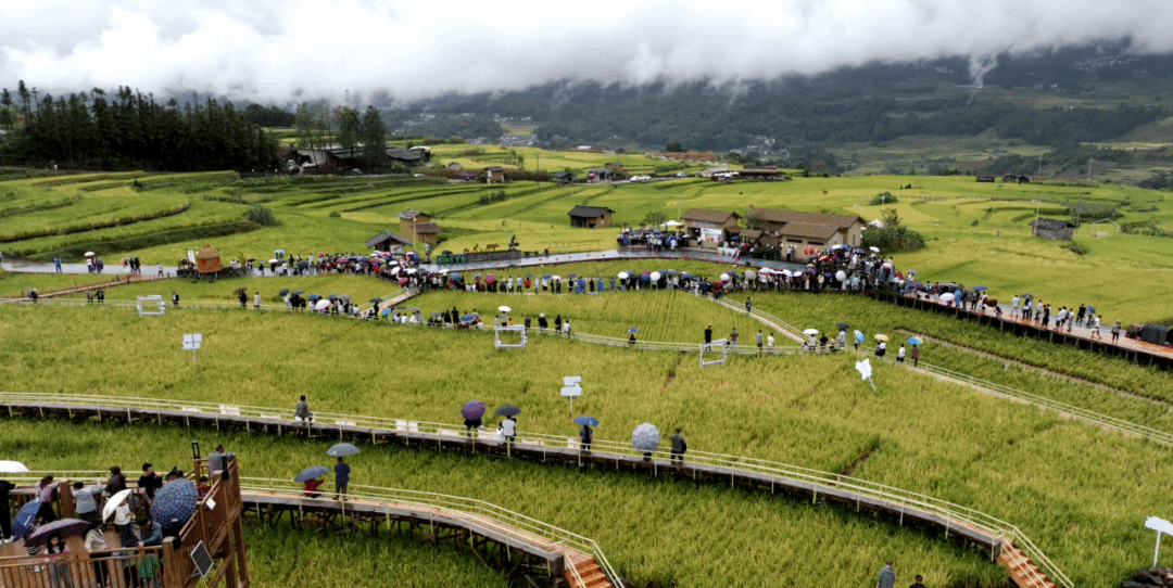 雨雾中的龙江乡,别有一番诗意。万亩梯田裹着雨珠,在秋日里泛着温润的光,与云雾缭绕的青山、雨雾朦胧的龙川江相映成趣,丰收的气息在雨水中愈发浓郁。