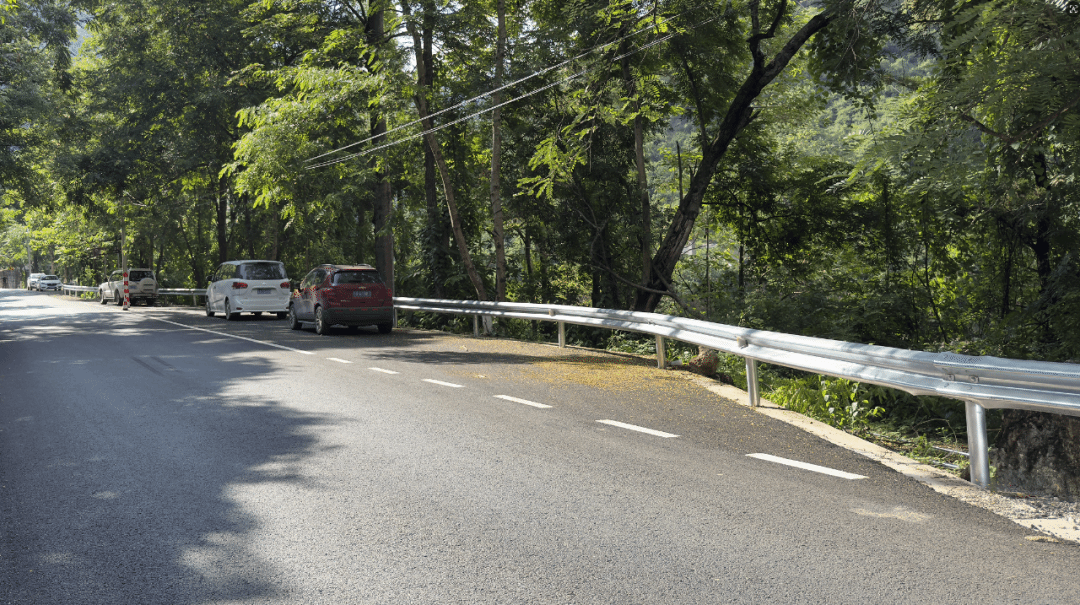 在临水临崖路段,科学架设波形护栏4864米,为过往车辆筑起坚实安全屏障;设置线性诱导标36块,在每处弯道提供清晰指引;立起涵洞警示桩196根,涂装混凝土护栏1698.4平方米,这些设施既是安全保障,也成了青山绿水间的亮丽点缀。针对老虎嘴、惠通桥等标志性景点,合理增设临时停车区,方便游客驻足参观、拍照留念。
