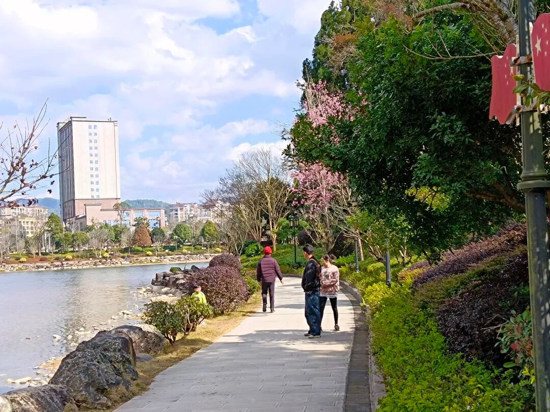 冬日暖阳下,龙陵龙山湖公园景致宜人:湛蓝天空倒映在清澈湖面,樱花与玉兰花次第绽放,鸟儿在枝头欢鸣,市民游客悠闲漫步其间,一幅生态和谐、宜居宜游的画卷徐徐展开。这是公园历经两个月修缮升级后,呈现的全新面貌。