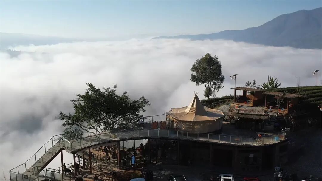 谁能想到,如今日均接待上千人的网红打卡地,一年前还是一处闲置的观景台。其爆火的背后,正是将咖啡的味觉价值嵌入无法复制的自然禀赋之中——天刚破晓,带着摄影设备的游客便慕名齐聚,在氤氲的咖啡香与缥缈的云海间定格美景,在静谧悠然的乡村时光里消解疲惫、治愈心灵。