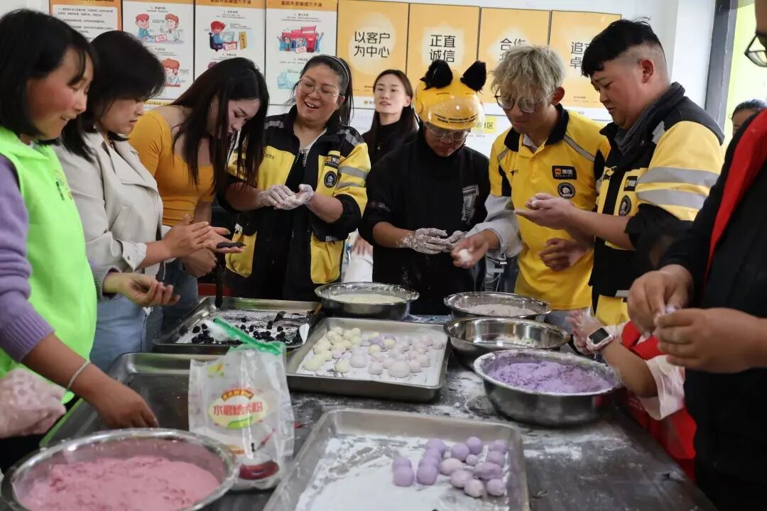 大家一边包汤圆,一边聊着家长里短。不一会儿,热气腾腾的汤圆出锅了。骑手王婷婷分享道:“这汤圆真甜,以前元宵节都是在送单路上度过的,今天能坐下来和大家一起吃汤圆,心里暖暖的。”