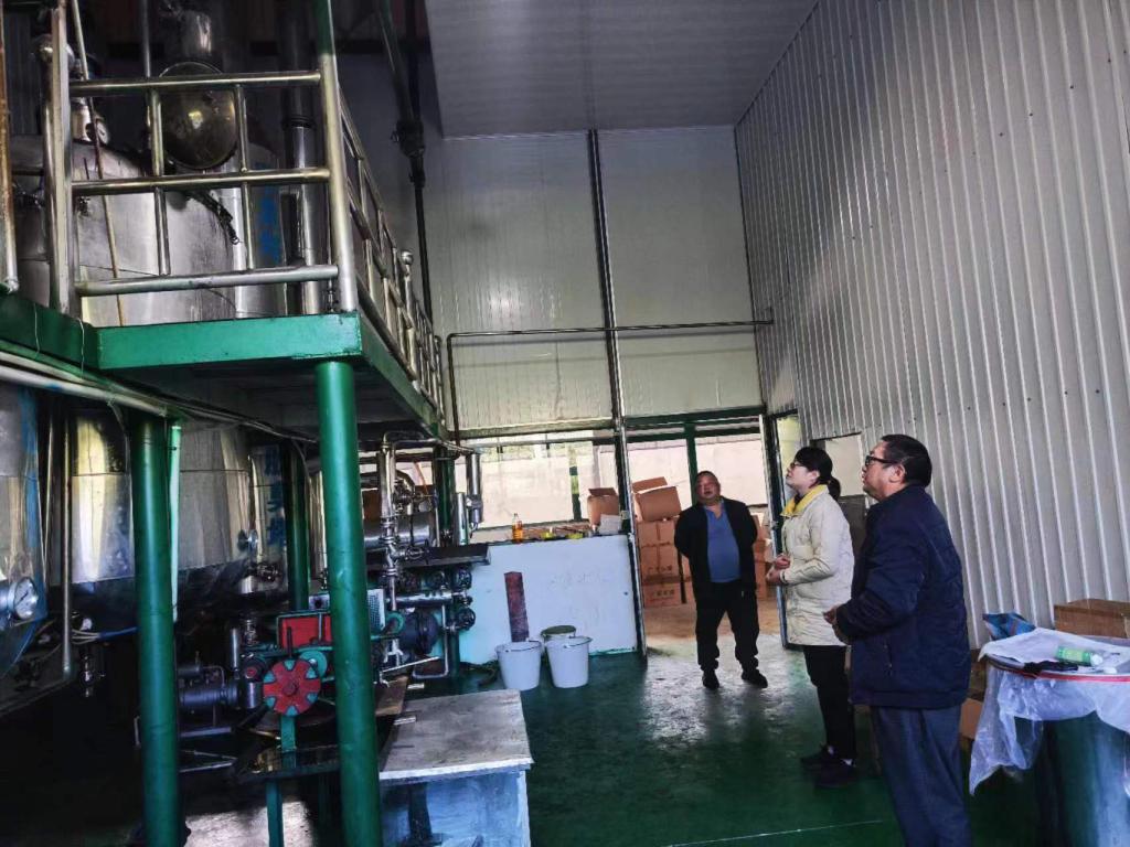 (实地查看云南深纹核桃产业开发有限公司生产车间)