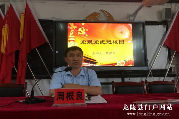 为使全县党员教师率先垂范、廉洁从教,强化师德师风建设,2018年7月23日—26日,龙陵县教育局以开展“万名党员进党校·善洲故里先锋行”为契机,邀请县纪委派驻县教育局纪检组组长到部分中心学校开展“党规党纪进校园”主题宣讲。