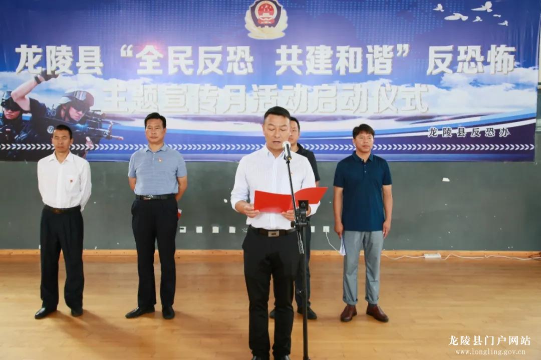 仪式上,县委常委、政法委书记、县反恐怖工作领导小组副组长张金龙同志宣布龙陵县“全民反恐共建和谐”反恐怖主题宣传月活动正式启动并作讲话。