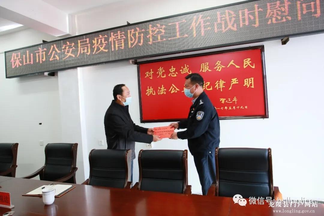 保山市公安局党委委员、驻局纪检监察组组长在战时慰问中指出:新冠肺炎疫情发生以来,龙陵县公安局高度重视,认真落实县委县政府和上级公安机关疫情防控工作要求。第一时间抽调精兵强将,全警动员,克服警力不足和安保任务艰巨的困难,部署落实快、纪律作风硬、防控成效显著。在卡点防控、信息核查、人员摸排、隔离管控、维护稳定等方面发扬了公安机关勇于担当、艰苦奋斗、吃苦耐劳的优良作风。坚决有力扛起使命责任,作出了突出贡献,充分展现了人民公安为人民的使命和担当。