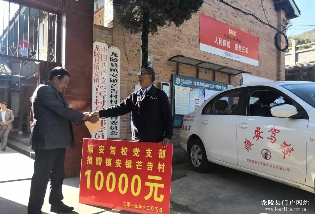 “杨支书,听说你们村青岩组要修水泥路了,我们两个驾校也表示一点心意,请您收下,山高坡陡修路确实不容易啊。”龙陵顺安驾校校长在捐赠仪式上拉着龙陵县镇安镇芒告村委会支部书记杨立富的手激动的说道。