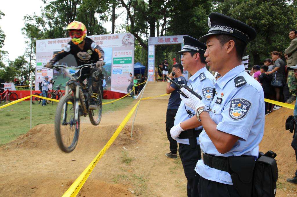 8月30日,云南省龙陵县公安机关组织巡特警、治安、国保等100多名警力为“中国龙陵松山山地自行车速降国际邀请赛”安保护航。