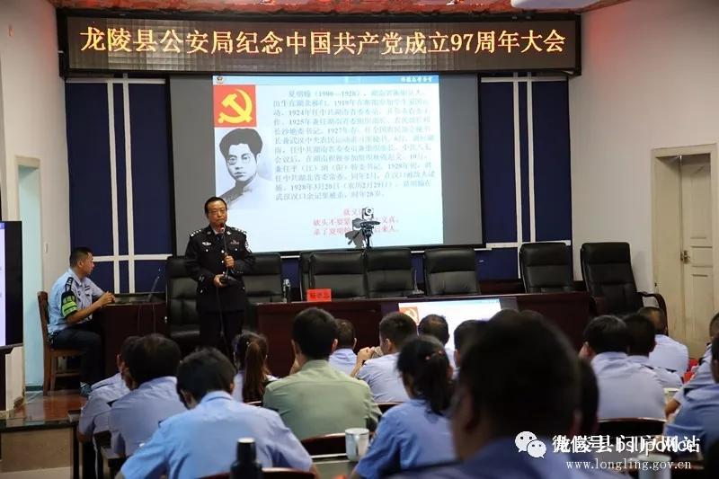6月30日,在“七一”建党节来临之际,龙陵县公安局组织召开庆祝中国共产党成立97周年庆祝大会,副县长、公安局党委书记、局长杨文祥出席会议并作讲话,会议由党委副书记、政委刘甦主持,局党委班子成员、局机关各部门全体党员在主会场参会,交警大队、看守所及各派出所党员在分会场参会,共计200余名党员参加了会议。