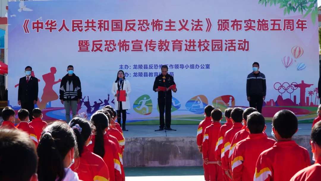 12月27日,龙陵县“反恐怖宣传教育进校园”系列活动启动仪式在龙山小学举行,活动由县委政法委副书记杨新双主持,县公安局副局长洪济让作动员讲话,县反恐工作领导小组相关成员单位领导和龙山小学师生代表共200余人参加活动。