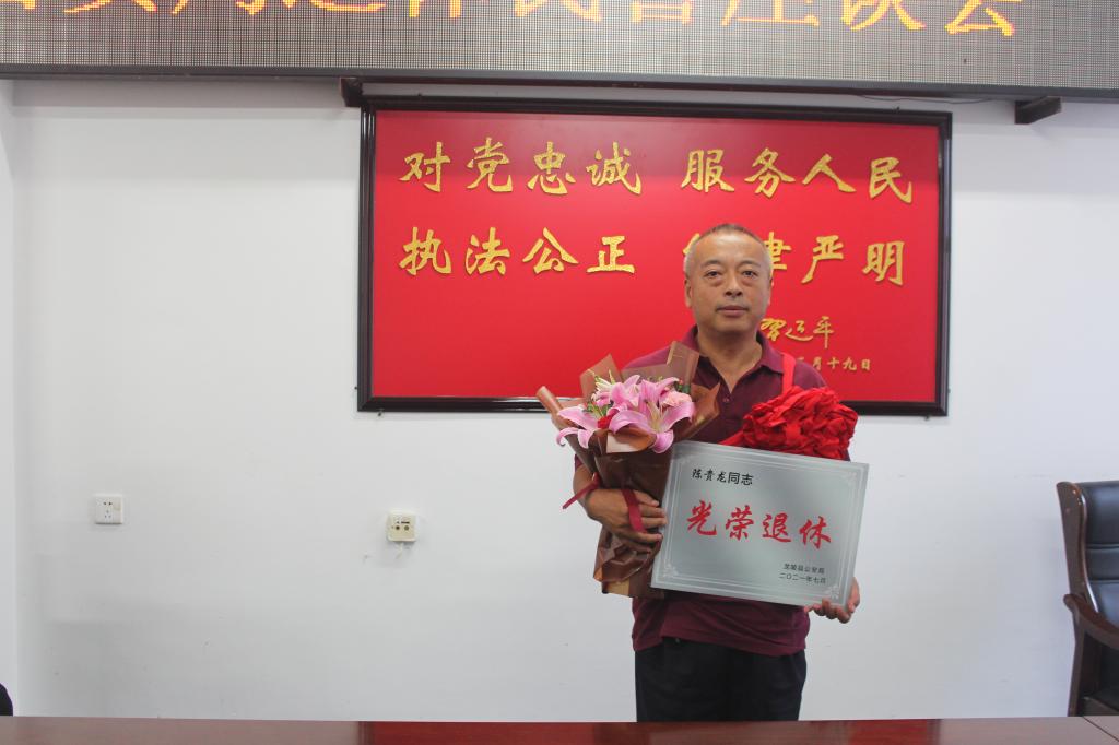 近日,龙陵县公安局召开退休民警座谈会,县局相关领导和民警共同欢送陈贵龙同志光荣退休。
