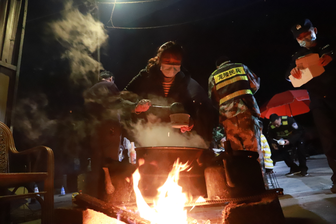 过一会儿,热气腾腾的汤圆出锅,警嫂们一碗一碗地打好,端给丈夫和卡点执勤的队友们,孩子们勤脚快手,把饮料递送给执勤人员。卡点不时有车辆经过,执勤人员一刻也不敢放松,在短暂工作的间隙里“争分夺秒”吞下汤圆,有的因正在进行查验工作,接到暖心汤圆却放在手边说“等会就吃”。